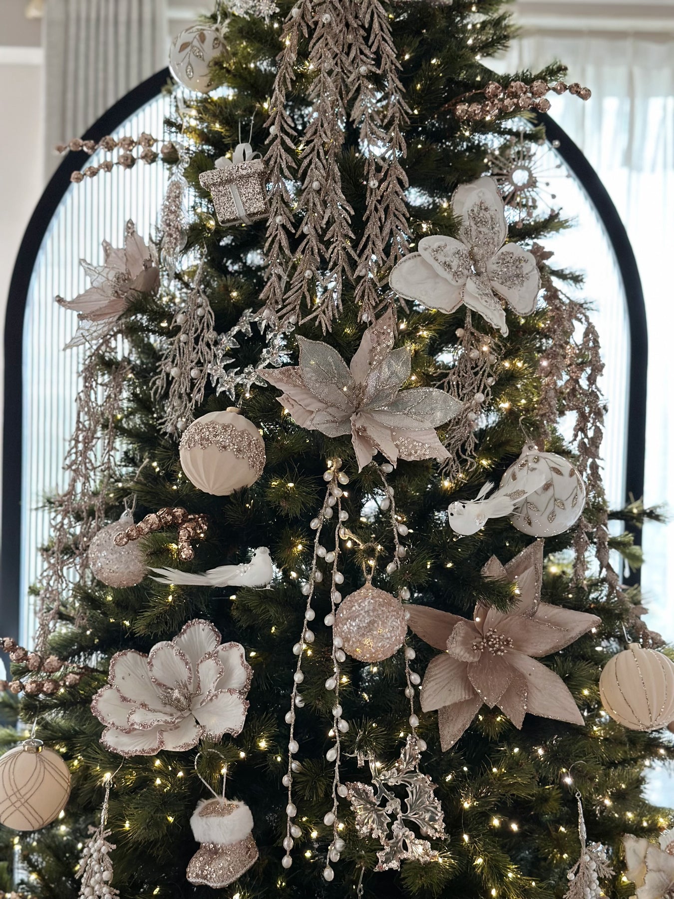 Elevate your holiday decor with the Glittered Champagne Fern Ornament, a luxurious touch for any festive setting. This stunning ornament is beautifully coated in elegant champagne gold glitter, adding a radiant sparkle that catches the light from every angle. Adorned with delicate faux pearl beads, each one thoughtfully placed to enhance its charm, this ornament brings a refined elegance to your Christmas tree, wreath, or garland. Perfect for those looking to add a hint of opulence and sophistication to their seasonal decor. Embrace the holiday spirit with this timeless piece that exudes festive grace and elegance.