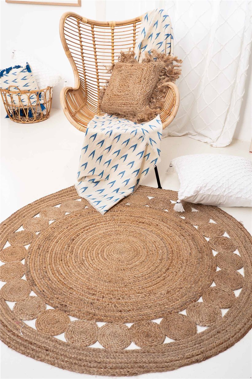 Add the perfect finishing touch to your flooring with this patterned round rug from Calma House. Crafted from 100% jute, this rug in a natural tone, it is a welcome addition to any interior. Pair it with complementing home accessories available separately from our large collection of home accessory picks to create a stylishly coordinated setting.