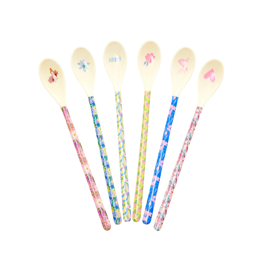 The recognisable melamine latte spoon in a bundle of 6 pcs. in the gorgeous "Flower Me Happy" prints. They are an old acquaintance, but still as lovely. They are perfect for a good latte, but also for the weekend's cake table, for a dessert or a delicious milkshake.