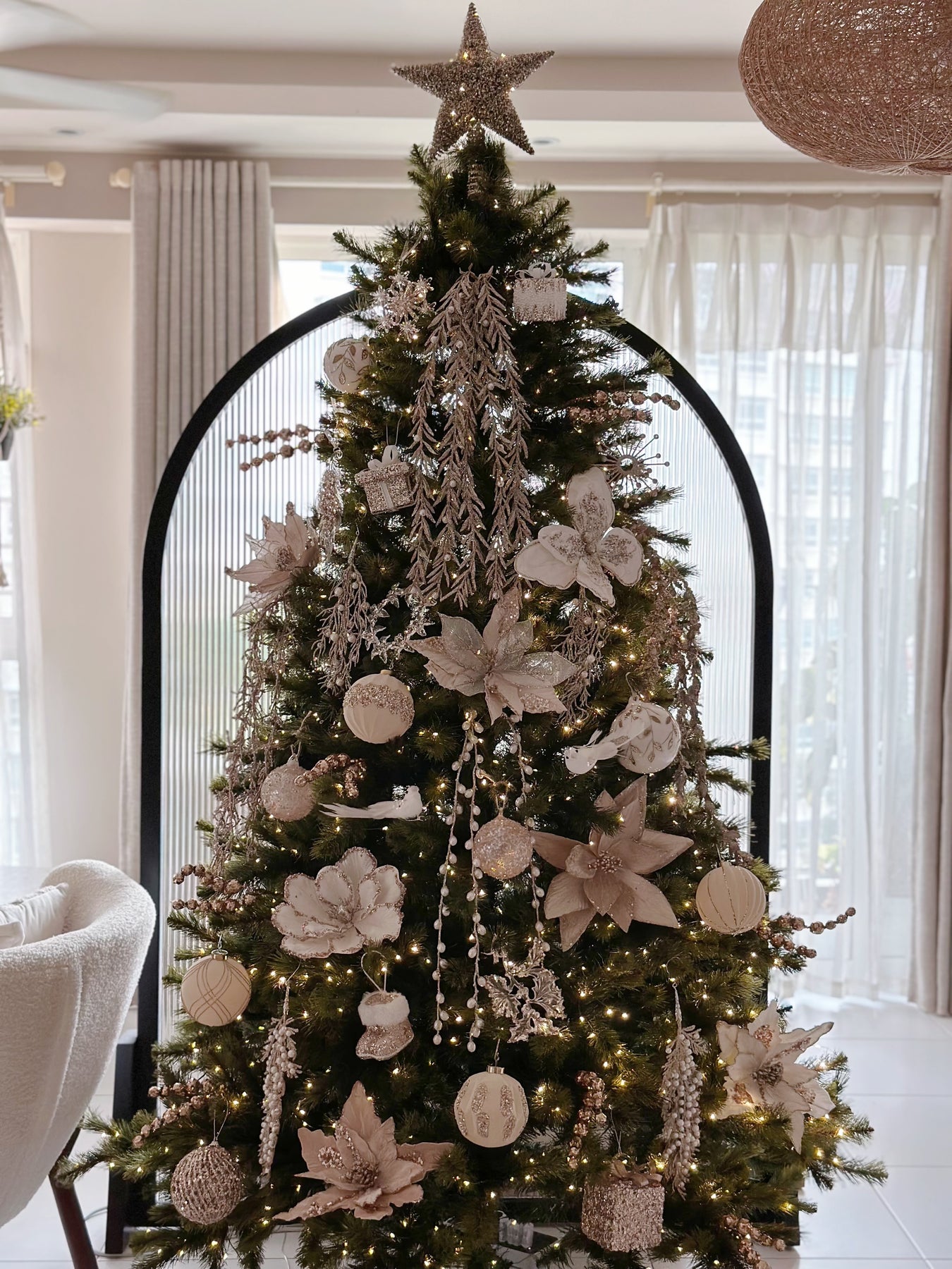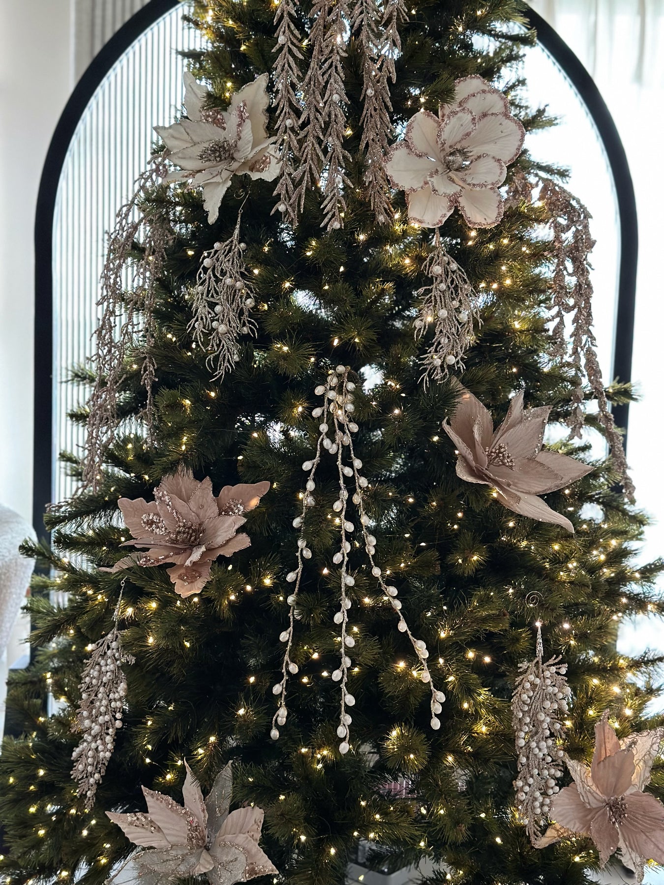 Embrace the beauty of the season with the Pearl Cascade Champagne Branch, a piece that exudes timeless elegance and festive glamour.