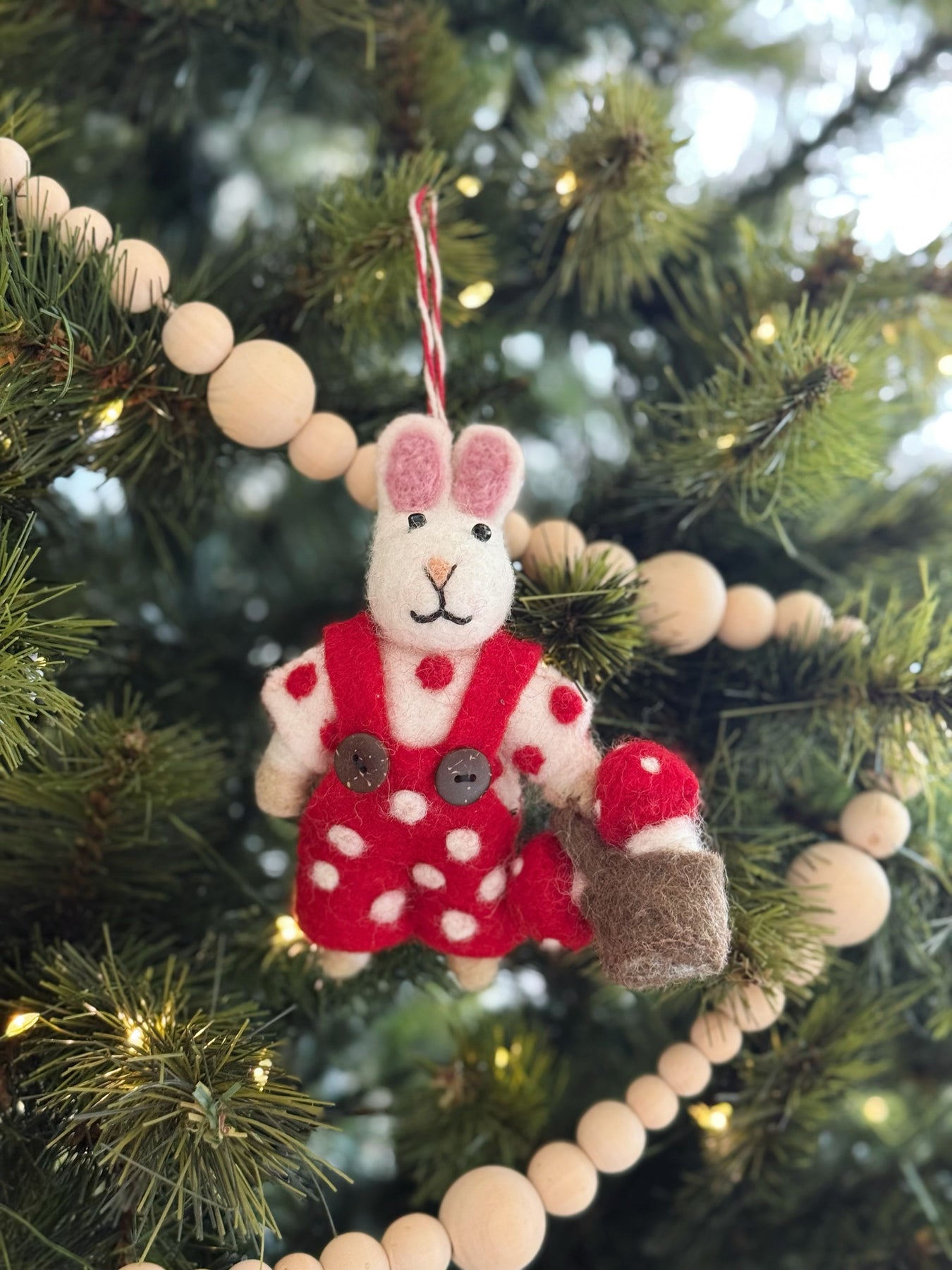 Mushroom Gatherer Bunny Felt Ornament