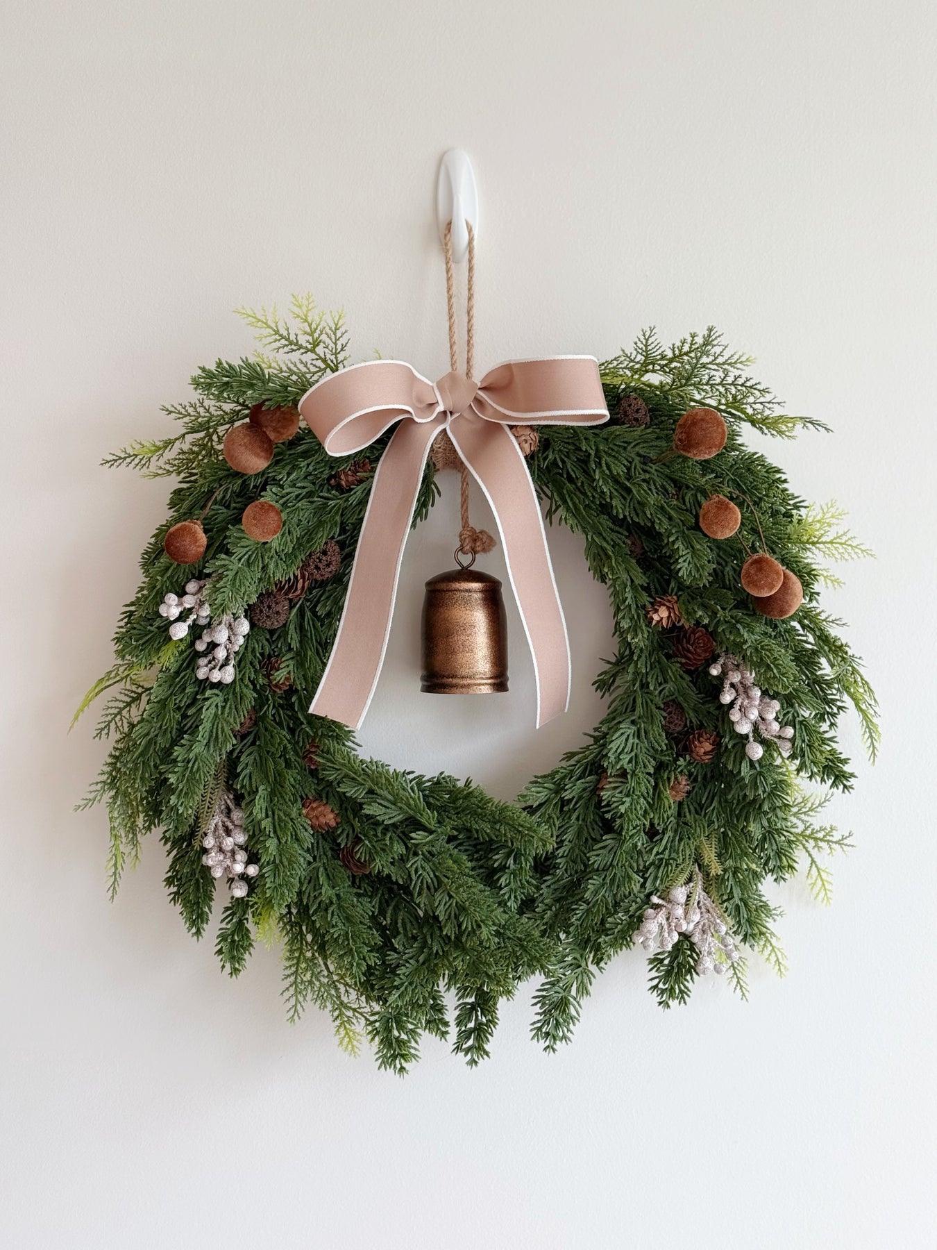 Hang it on your front door, entryway, or above the mantel — its gentle tones and lush textures make it a beautiful accent from Christmas through the new year and beyond.