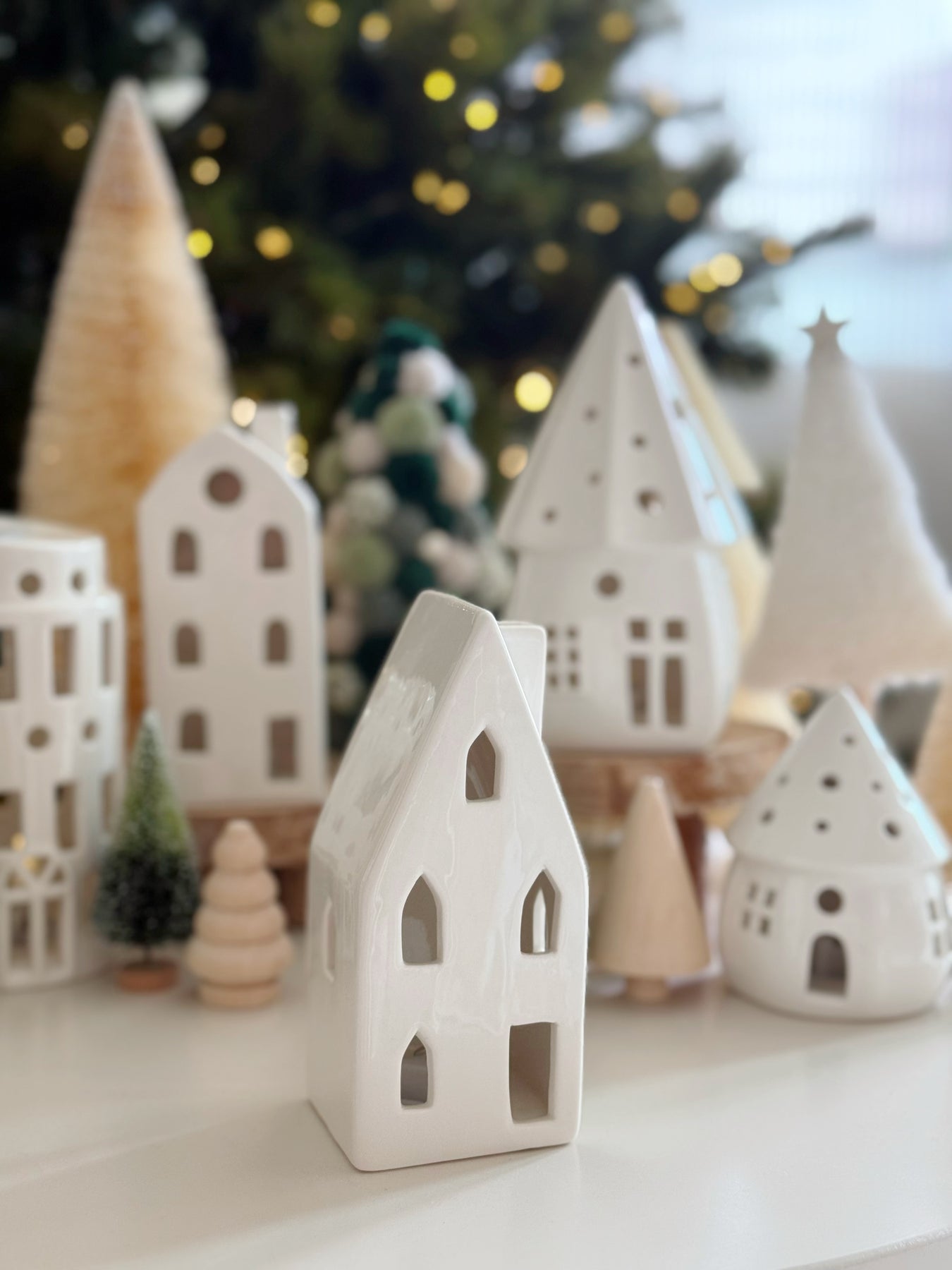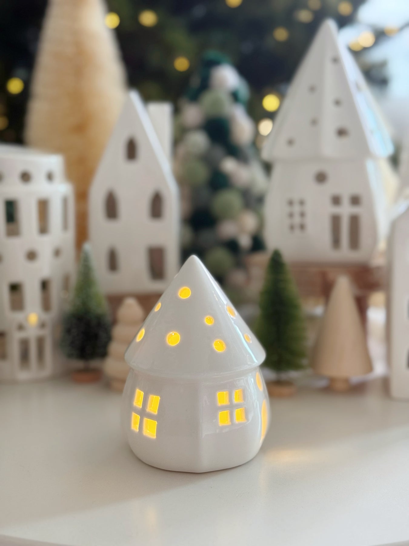 A cozy little village that lights up your home with warmth and wonder. This collection of white porcelain LED houses brings the magic of a quiet winter night to any corner of your space — calm, peaceful, and softly glowing.