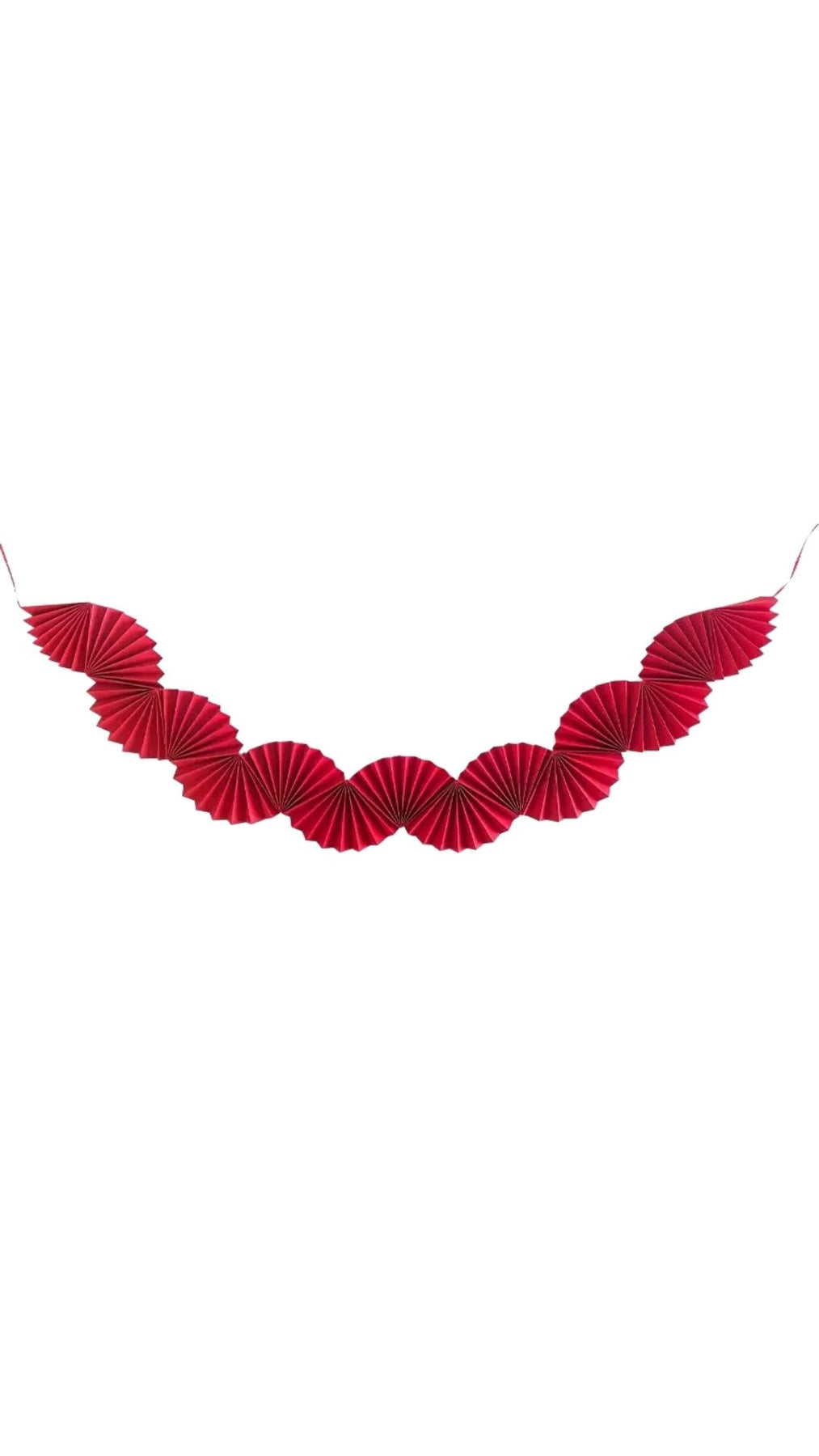 Add a refined festive touch to your space with the Crimson Harmony Paper Fan Garland. Designed in rich crimson red, this folded paper garland opens up into a beautifully sculpted fan-shaped form, creating instant visual impact with minimal effort.
