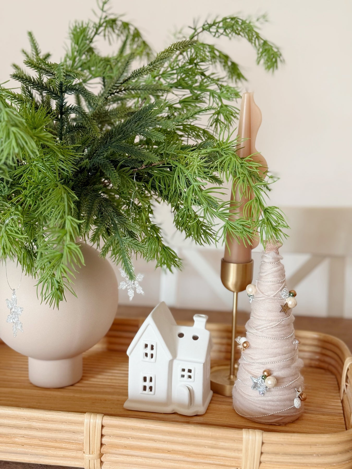 Use it on its own in a tall vase for a clean, minimalist statement, or mix it with berries, cedar, or eucalyptus for a lush Christmas arrangement. Its soft-touch finish and flexible wired stem make styling effortless, whether for table décor, wreaths, or seasonal centrepieces that stay beautiful year after year.