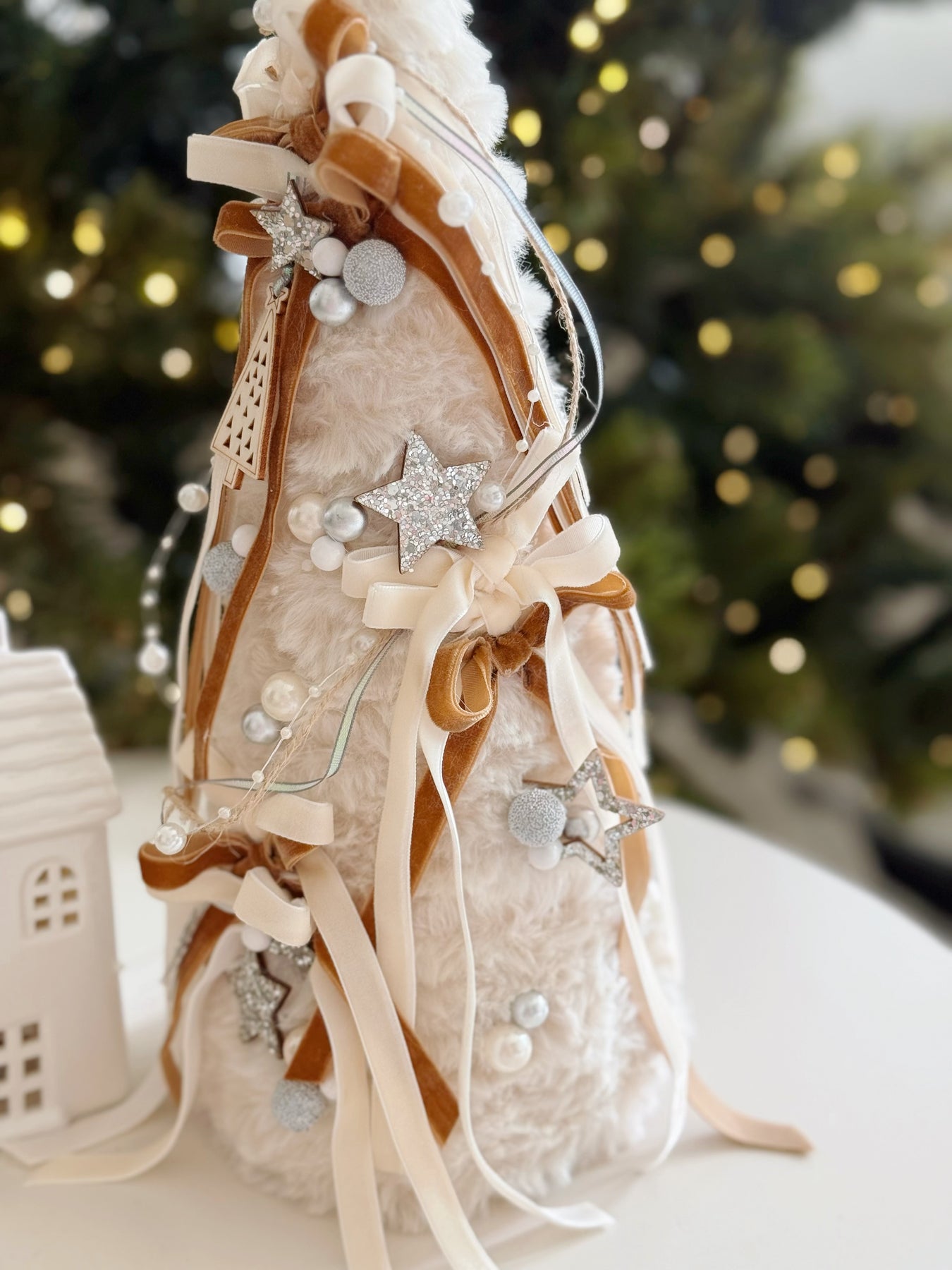Every tree carries its own personality — some gently shimmering, some adorned in layered trims — all sharing the same dreamy neutral palette that blends seamlessly into any festive styling. Whether styled as a group or gifted to someone special, these pieces bring a tender, handcrafted warmth to your home this Christmas.