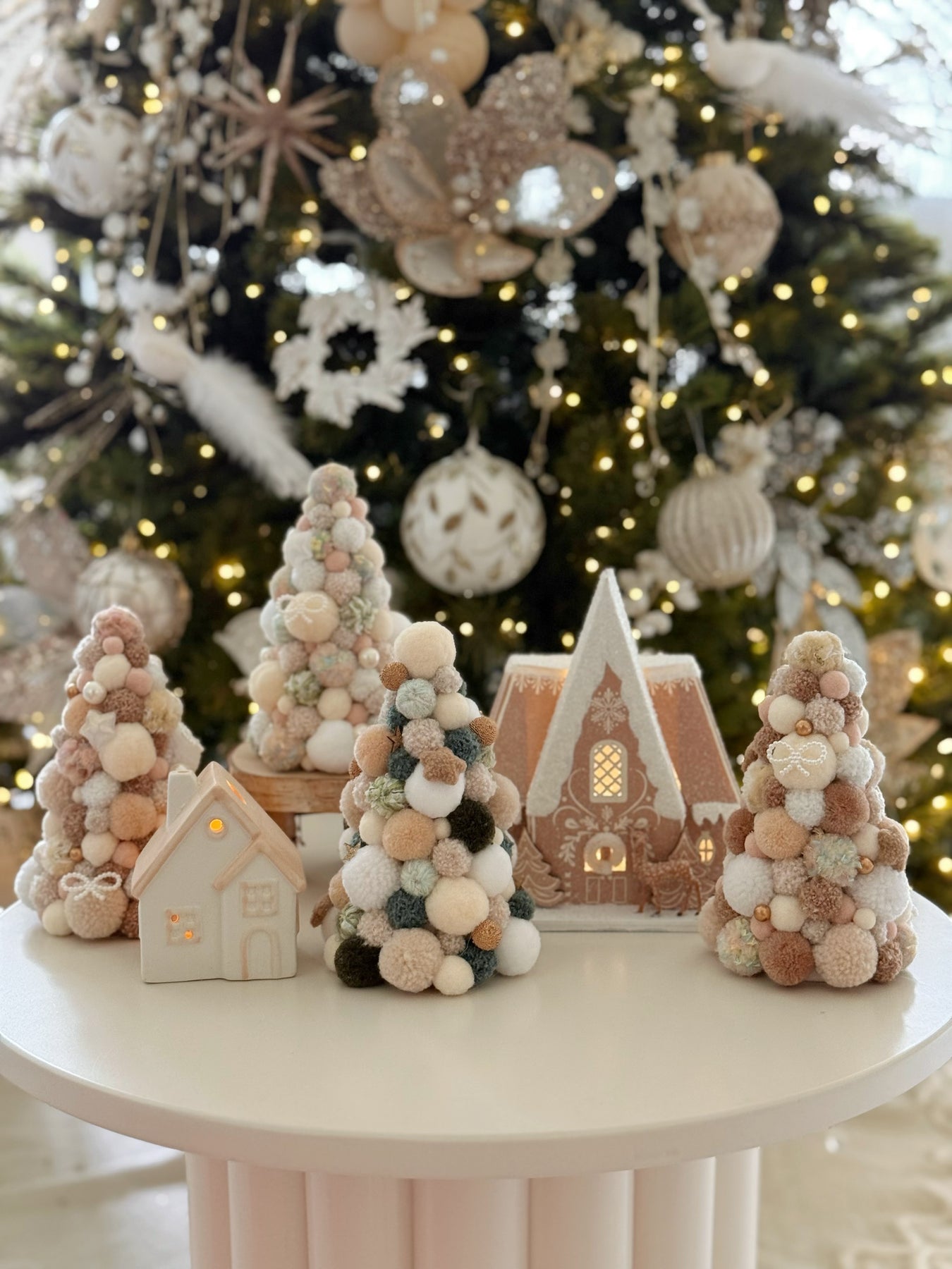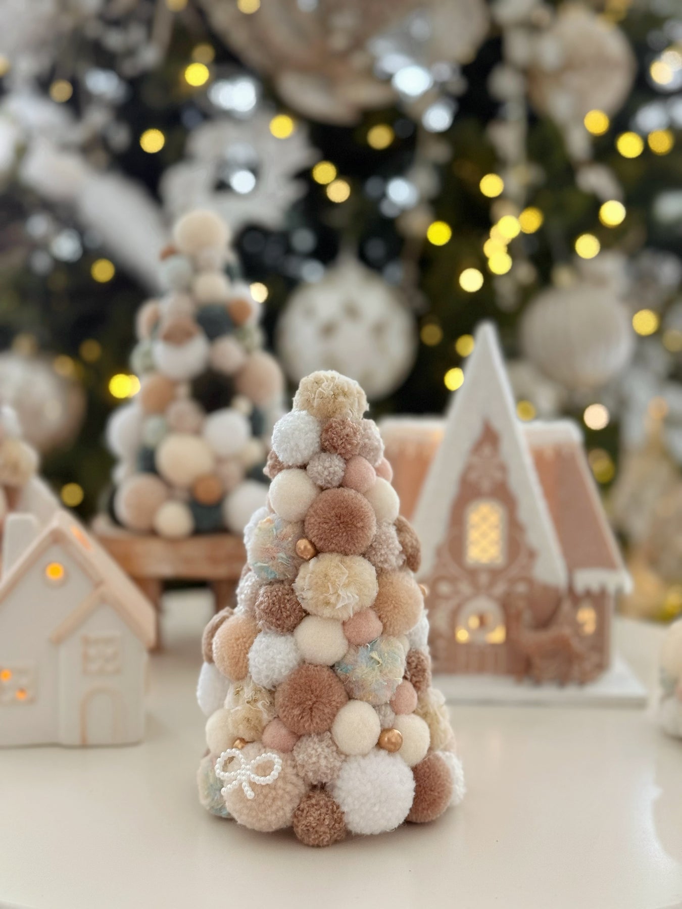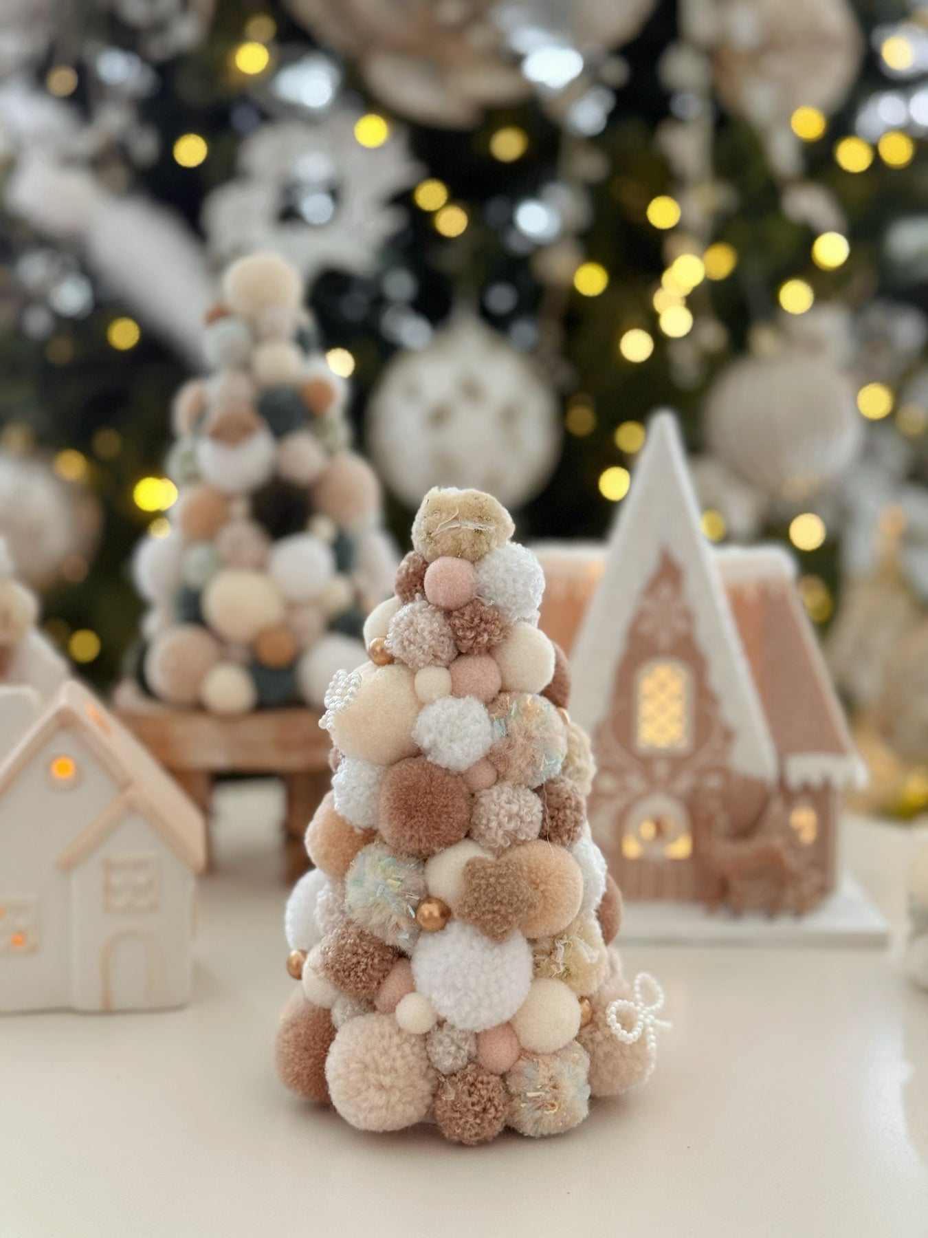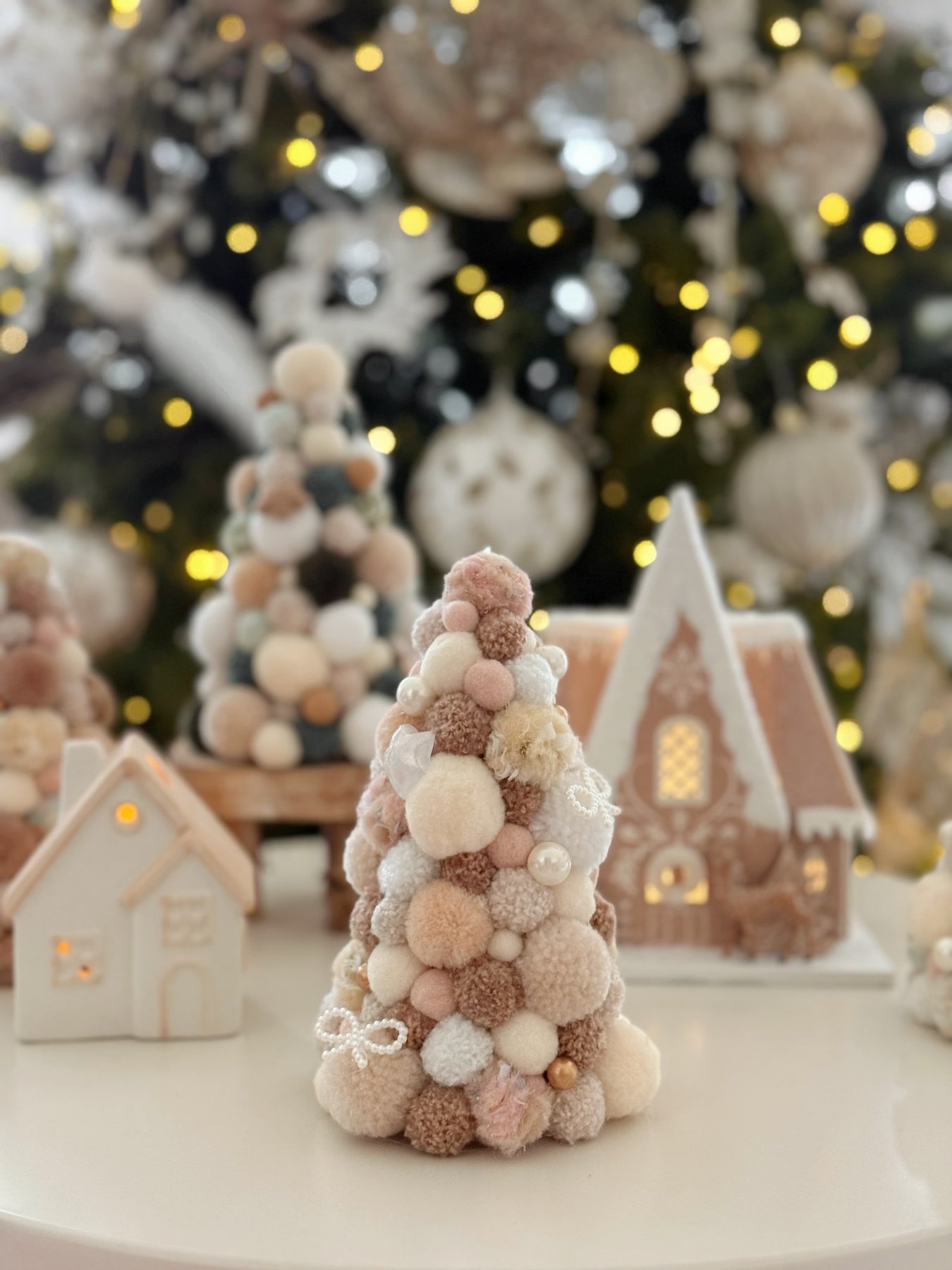 Each piece in our Whimsical Pom Pom Tree Collection is lovingly handmade — layer by layer, with a medley of fluffy pom poms, textured yarns, and pearly accents in soothing pastel tones. The result: a cozy, heartwarming piece that brings festive magic with a modern, soft-touch charm.