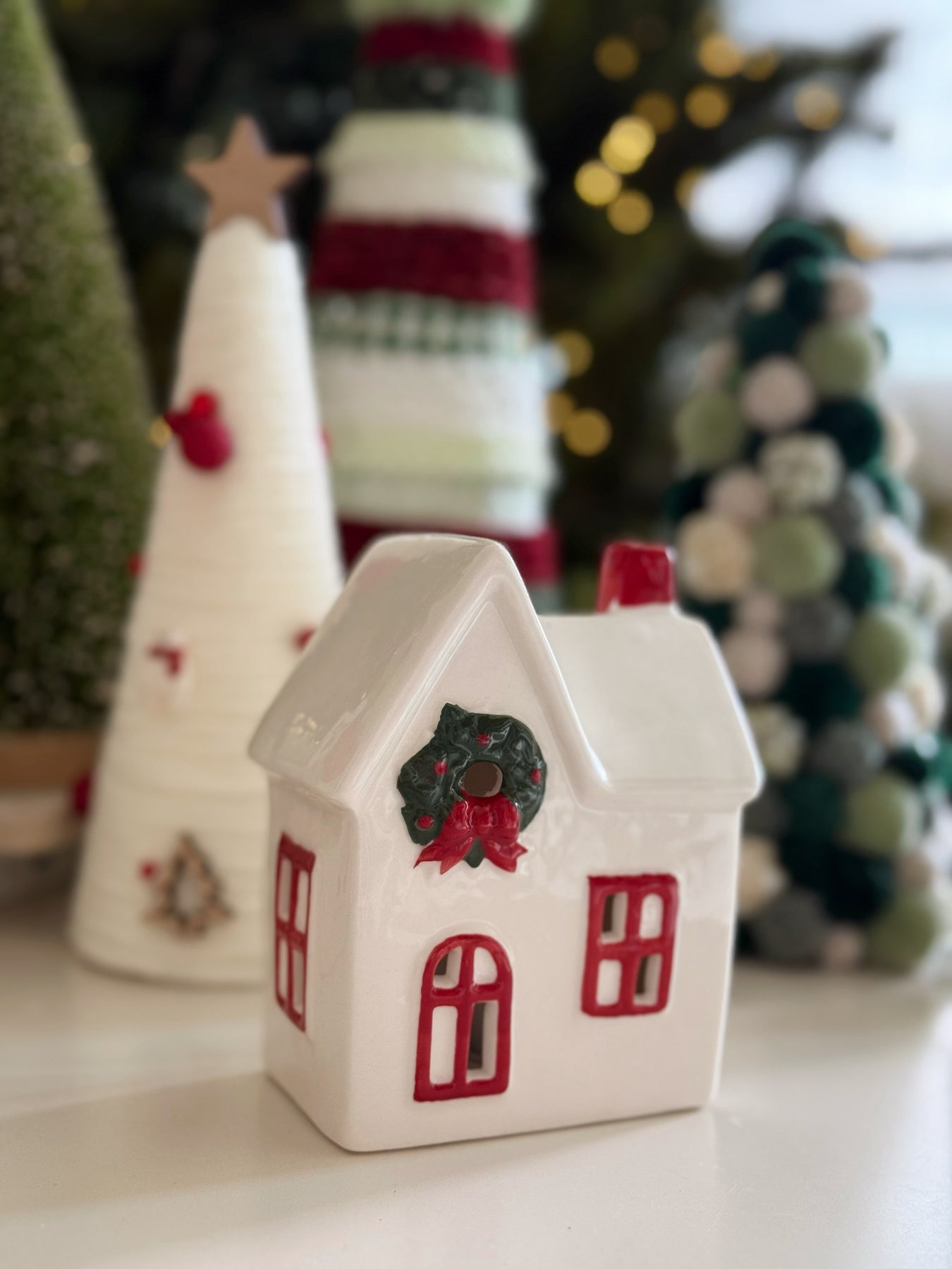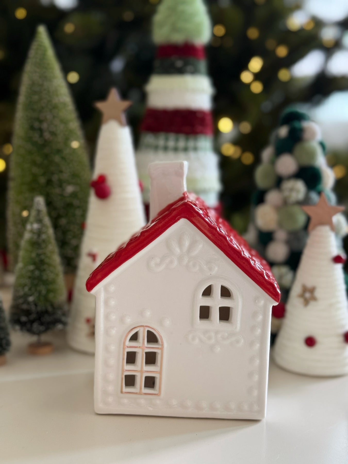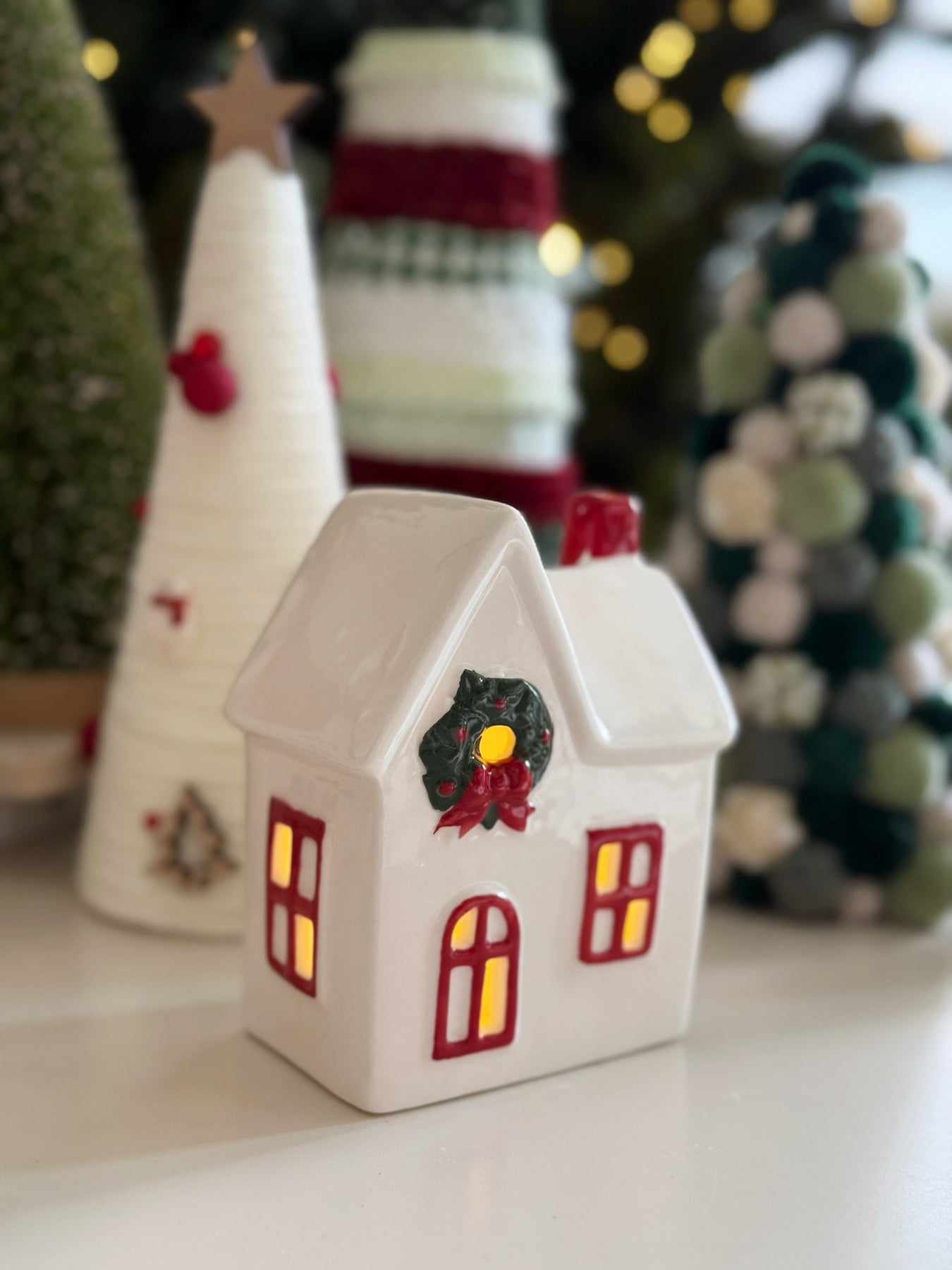 Bring home the timeless magic of Christmas with our Merry Hearth Village — a radiant collection of white porcelain houses trimmed with classic Christmas red. Each piece glows warmly from within, capturing that cozy, heartwarming glow that makes the season so special.