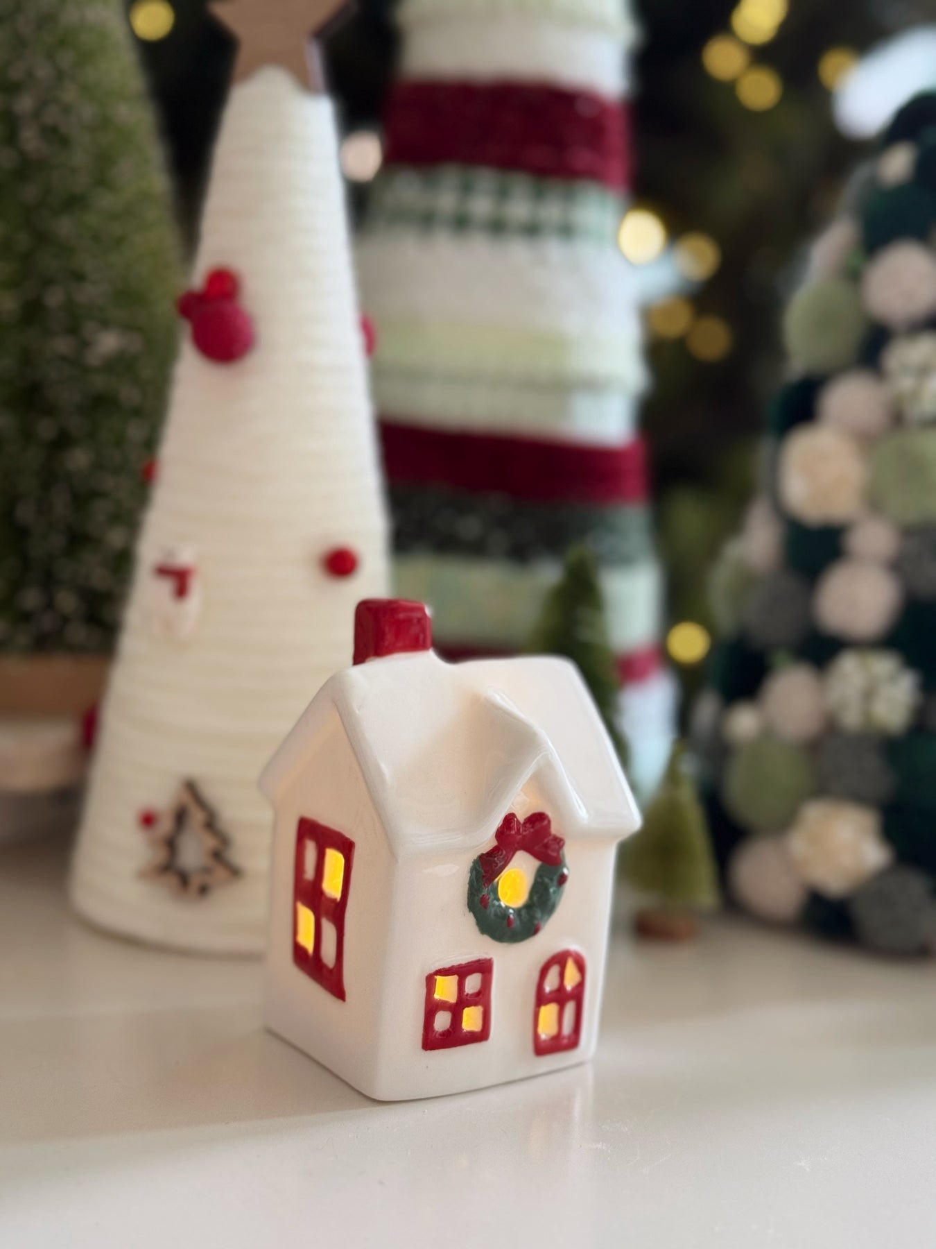Every little house is crafted with love, featuring wreaths, ribbons, and gently embossed details that evoke cheerful holiday memories. Style them together to build your own festive village scene, or scatter them around your home for twinkling touches of Christmas charm.