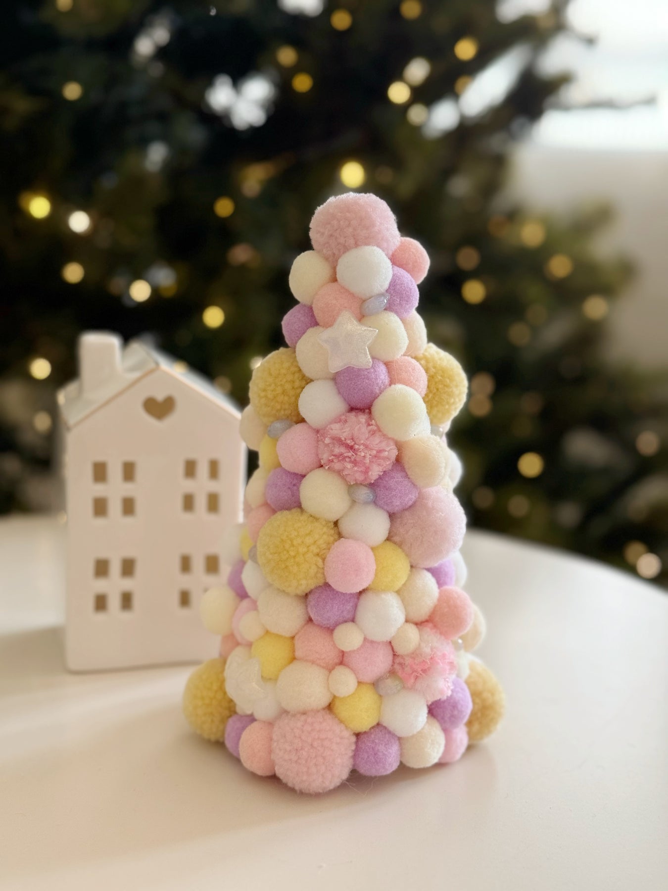 A sweet celebration of colour and joy — this handcrafted collection captures the whimsical side of Christmas with the softest pastel palette. Each pom pom tree is lovingly handmade with plush textures and dreamy hues that feel like a sugar-coated wonderland.