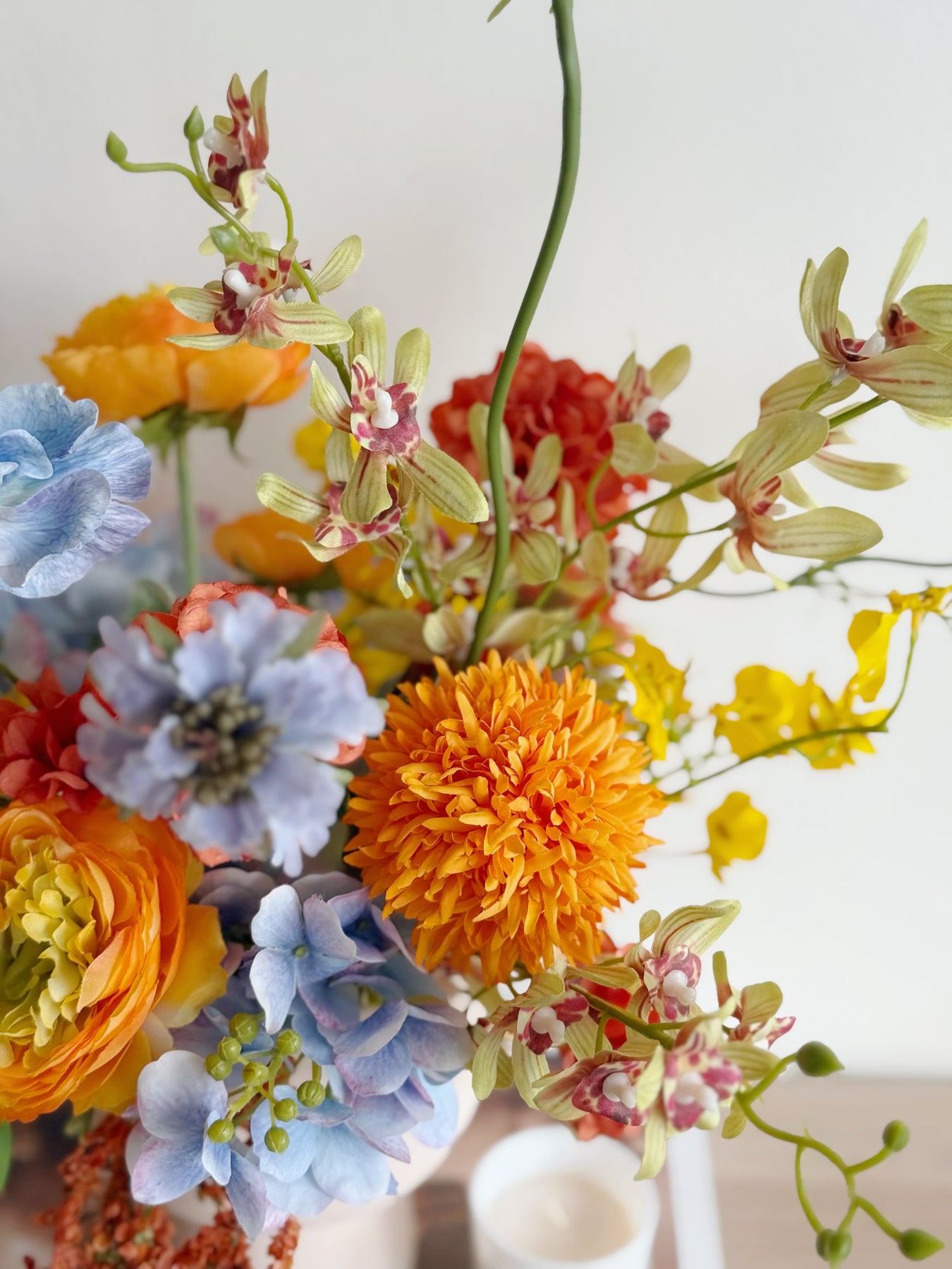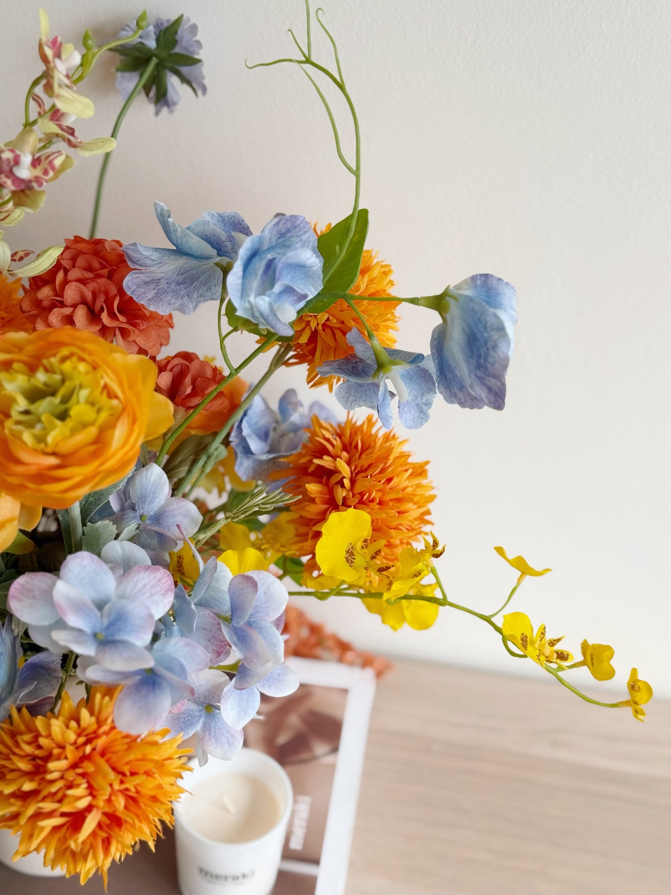 A cheerful, colour-filled faux floral arrangement designed to instantly lift the mood of any space.