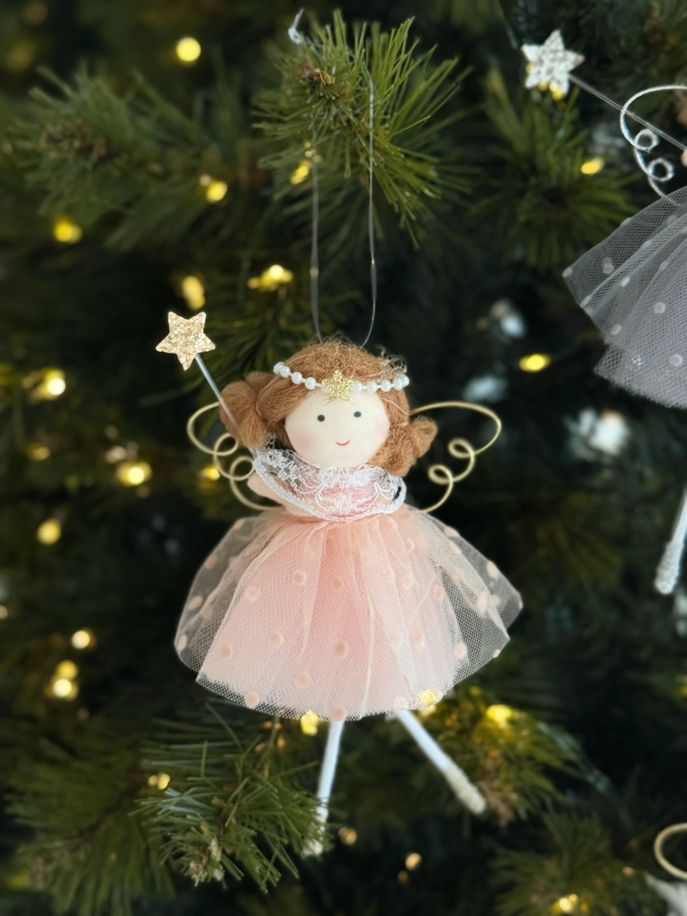 Light as air and sprinkled with magic, these twinkle angels wear dotted tulle dresses and hold tiny star wands. A dreamy touch for those who love a bit of sparkle and fairytale charm on their tree.