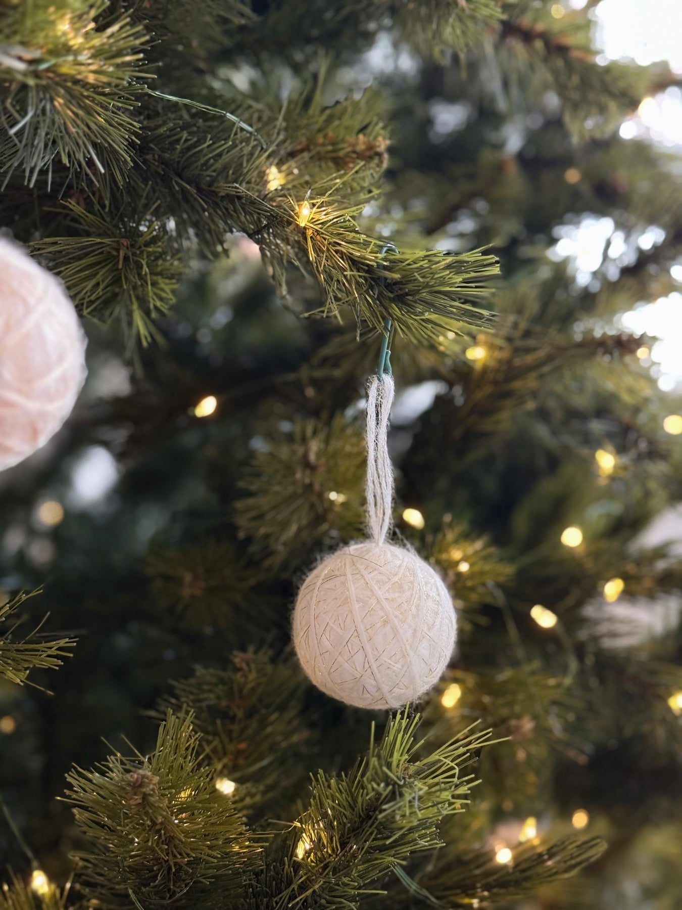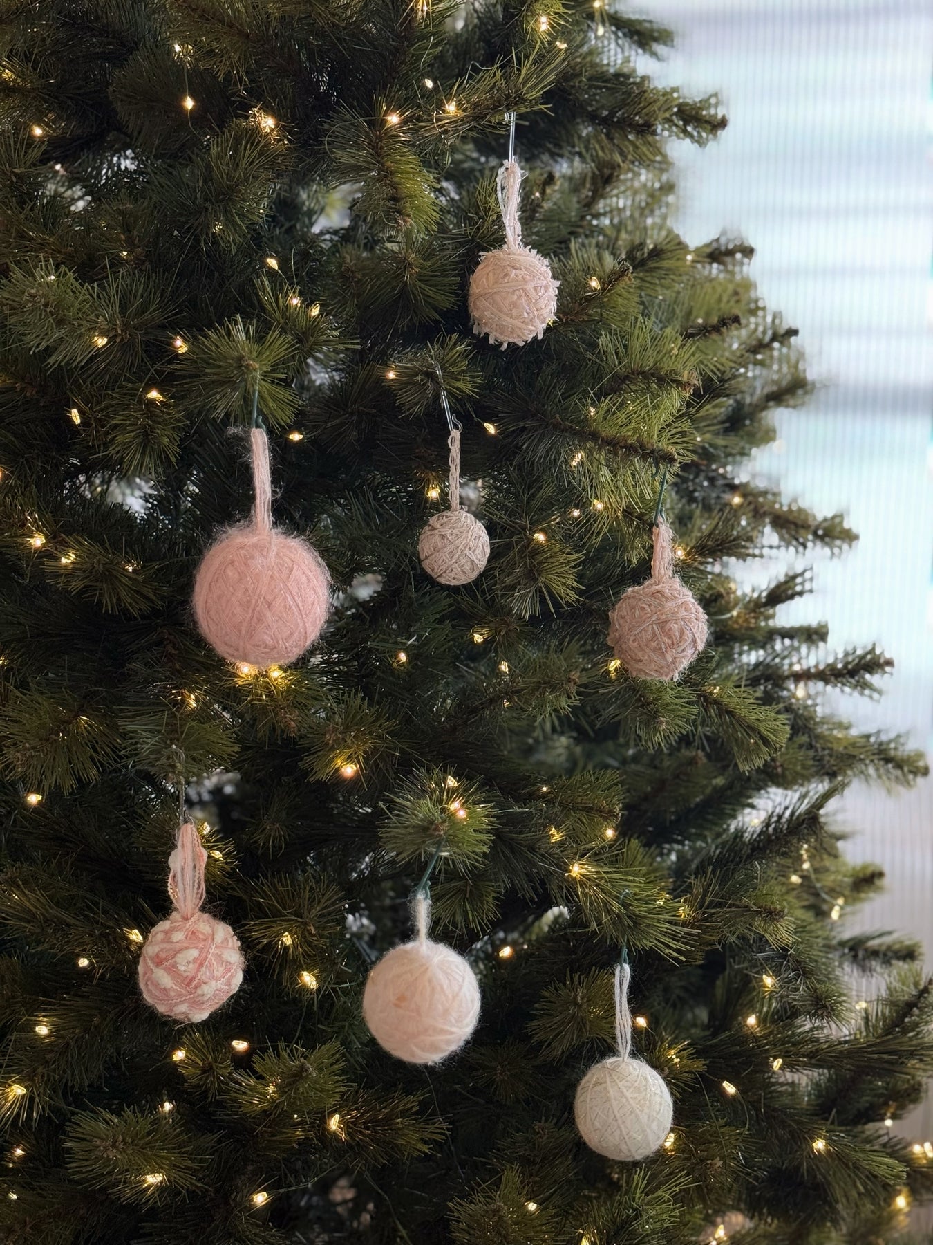 Soft, graceful, and full of cozy charm — this collection features gentle shades of nude blush, cream, and frosted peach. Each bauble is wrapped in plush, textured yarn with subtle shimmer threads that glisten like early morning frost.