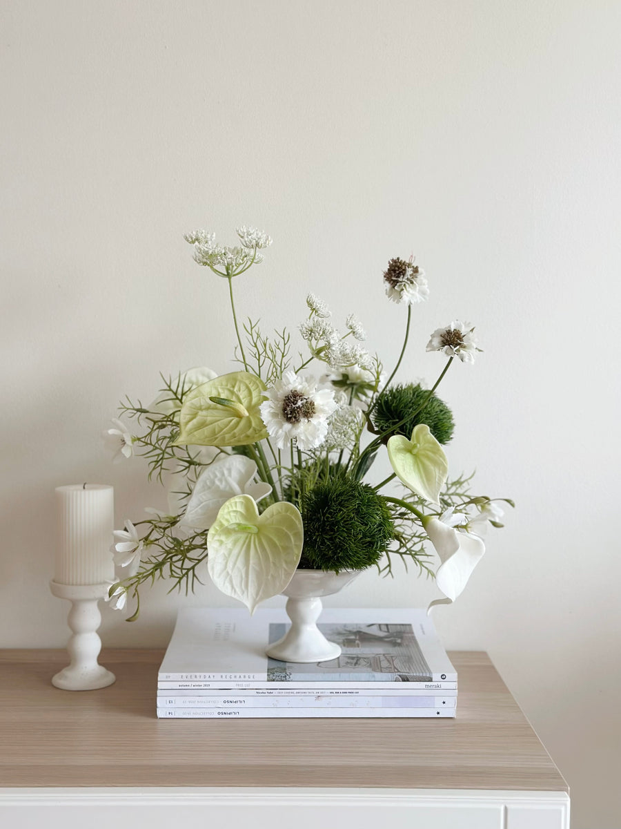 Refresh your space with the effortless elegance of Botanic Breeze in the Pot’a meticulously crafted faux floral arrangement that captures the beauty of nature in its purest form. Featuring a harmonious blend of crisp white blooms and lush green foliage, this all-rounded design radiates an airy, flowy charm that feels both refreshing and sophisticated.