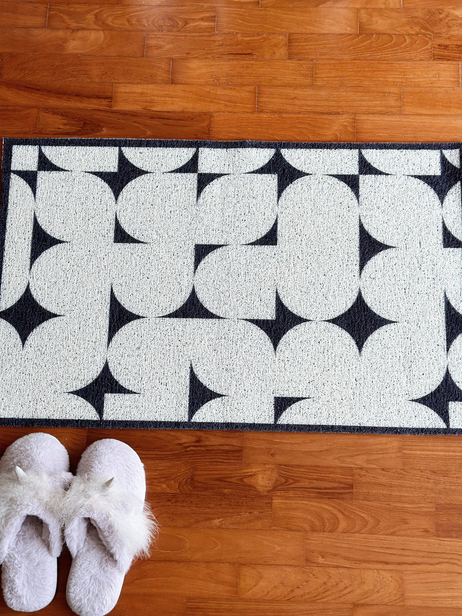 Introducing the Geometric Bloom PVC Doormat – a seamless blend of functionality and artistry to greet your guests with style. This doormat features an arresting pattern of stylized blooms, set in a sharp, geometric contrast that captures the eye. Crafted with high-quality PVC, it promises durability and resilience against the elements, making it perfect for both indoor and outdoor settings. The textured surface is designed to trap dirt and moisture, ensuring your space remains clean. With its anti-skid backing, it stays securely in place. Easy to maintain and clean, this doormat is not just a practical necessity but a statement piece that adds an elegant touch to any threshold. PVC coils do not shed, so the mat is completely hassle-free.