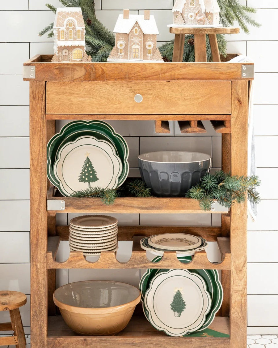 Add festive flair to your holiday table with our Green Scalloped Cream Lines Plate. Its elegant scalloped edge and subtle cream line detailing perfectly complement Christmas décor, creating a coordinated and cheerful setting for your party.