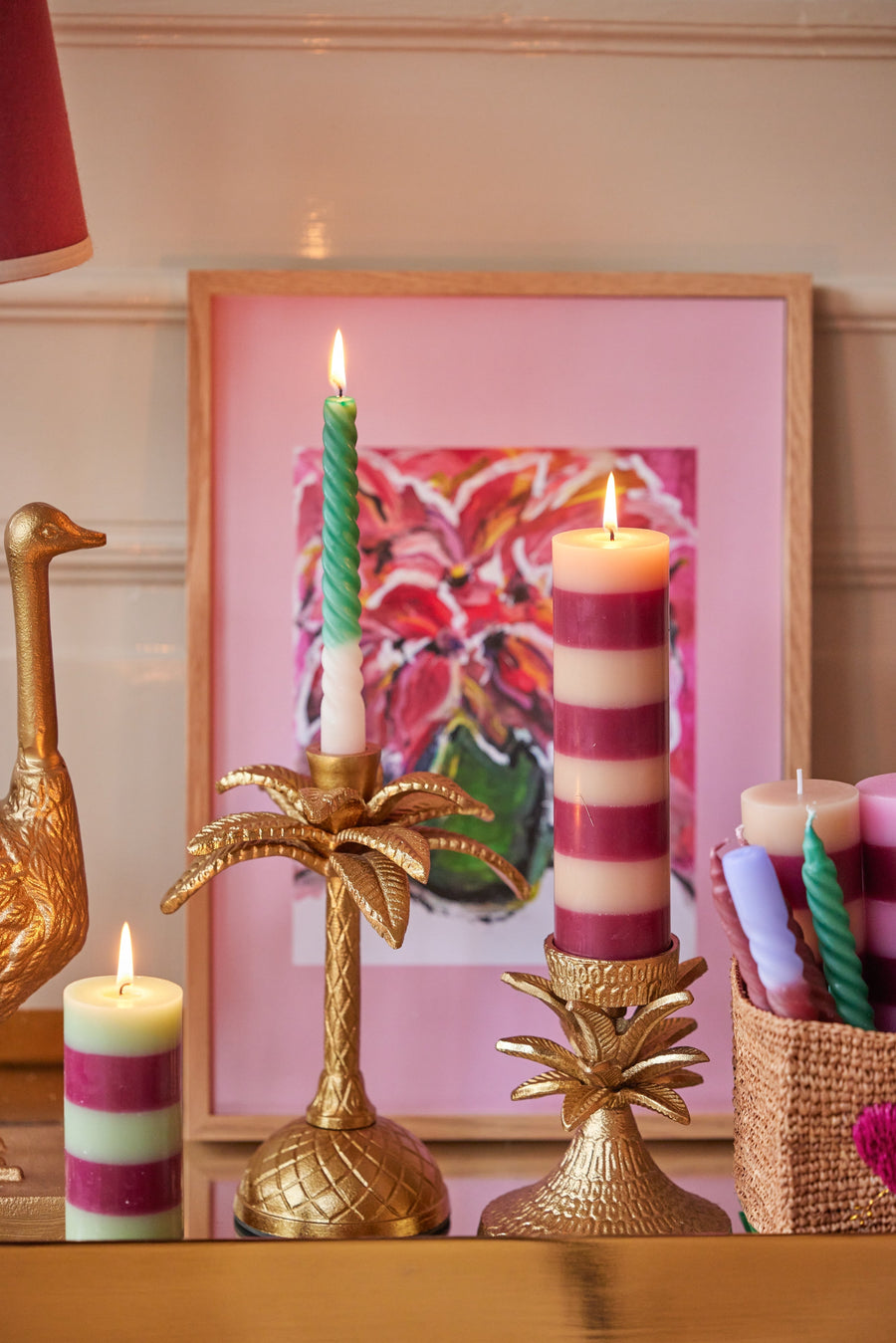 Fun and cute golden candleholder shaped like a palm tree. It is made of metal and is perfect for both a splash of color in the living room and a funky table setting!