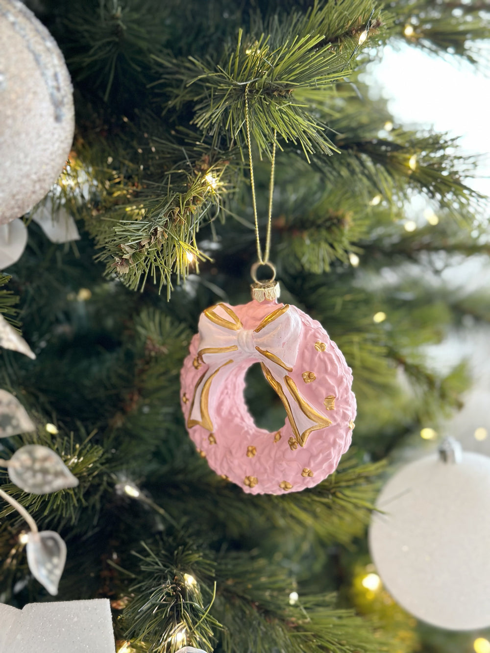 Add a touch of elegance and sweetness to your holiday decor with our Pink Frost Wreath Ornament. This charming ornament features a soft pink wreath adorned with delicate golden accents, perfectly tied with a graceful white and gold bow. Made from durable plastic, this lightweight ornament is easy to hang and brings a festive yet feminine charm to any Christmas tree. Whether you’re aiming for a whimsical holiday look or gifting it to someone special, this ornament is sure to bring joy and style to your seasonal celebrations.