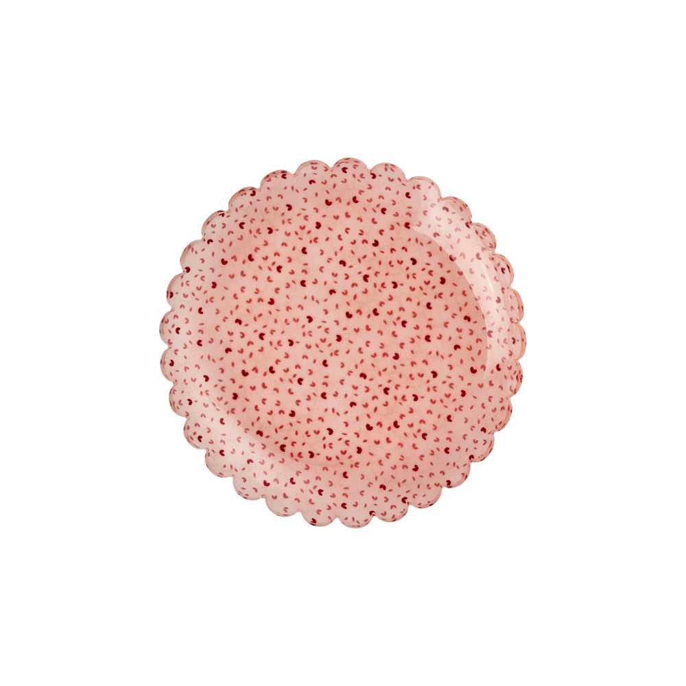 Our acrylic cake plates are perfect for a summer picnic, a tapas night in great company or just a piece of cake on a Sunday afternoon. This one is with cute, coral dots and flower inspired rims! Mix and match it with our melamine tableware or your old heirlooms to create a truly unique table setting… and when it’s time to clean up, you can just pop it in the dishwasher – funky functionality at its best!We love using acrylics as a material when setting the table - the material is strong and durable, has a long lifespan and is overall super practical. Acrylics can even be put in the freezer and can contain food- and drinks up till 70 degrees Celsius.