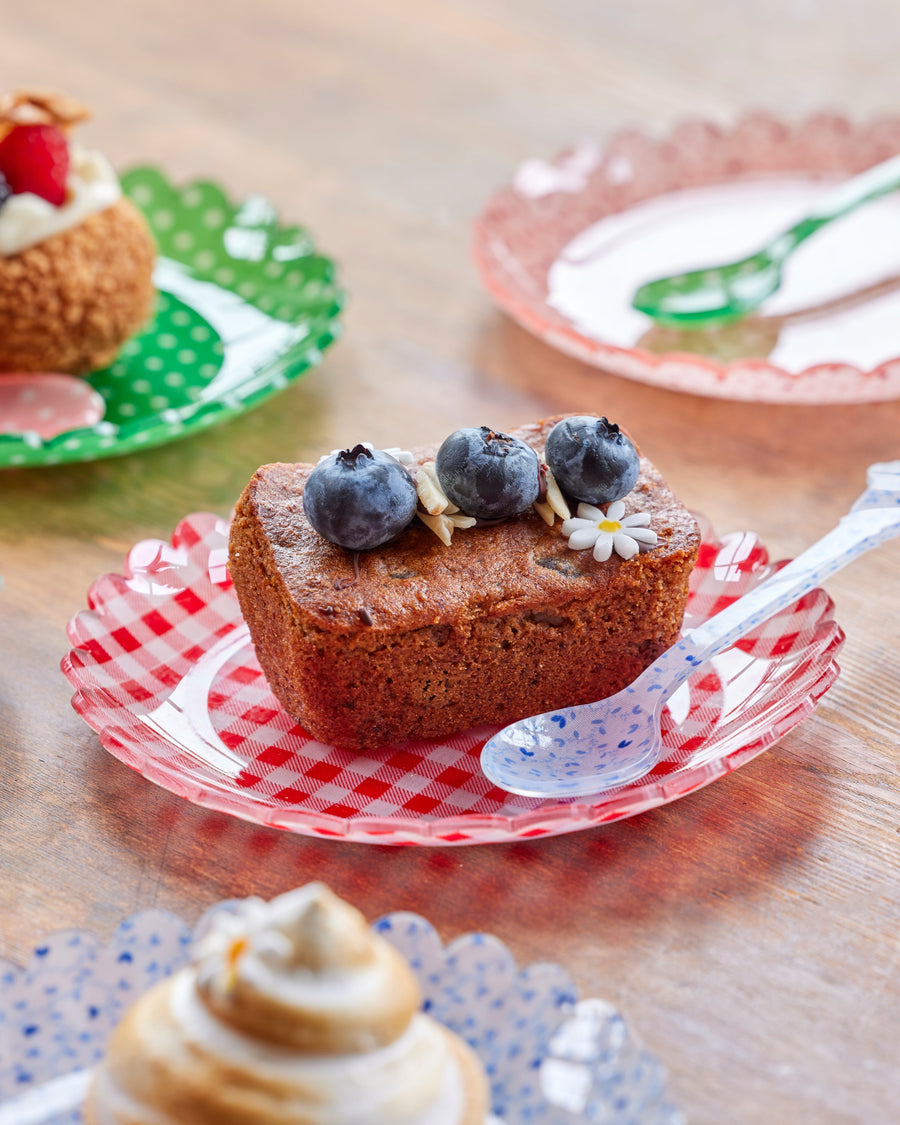 Our acrylic cake plates are perfect for a summer picnic, a tapas night in great company or just a piece of cake on a Sunday afternoon. This one is with cute, coral dots and flower inspired rims! Mix and match it with our melamine tableware or your old heirlooms to create a truly unique table setting… and when it’s time to clean up, you can just pop it in the dishwasher – funky functionality at its best!