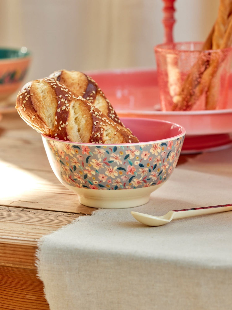 Lovely medium melamine bowl in the funky "Small Sandy Flower" print. The bowl is perfect for breakfast, some soup, a small flower, or candy on a Friday night. Spacious and usable for nearly everything, and can be used outdoor as well as indoor... In fact, the sky is the limit and the possibilities are endless - so use it for whatever you need.