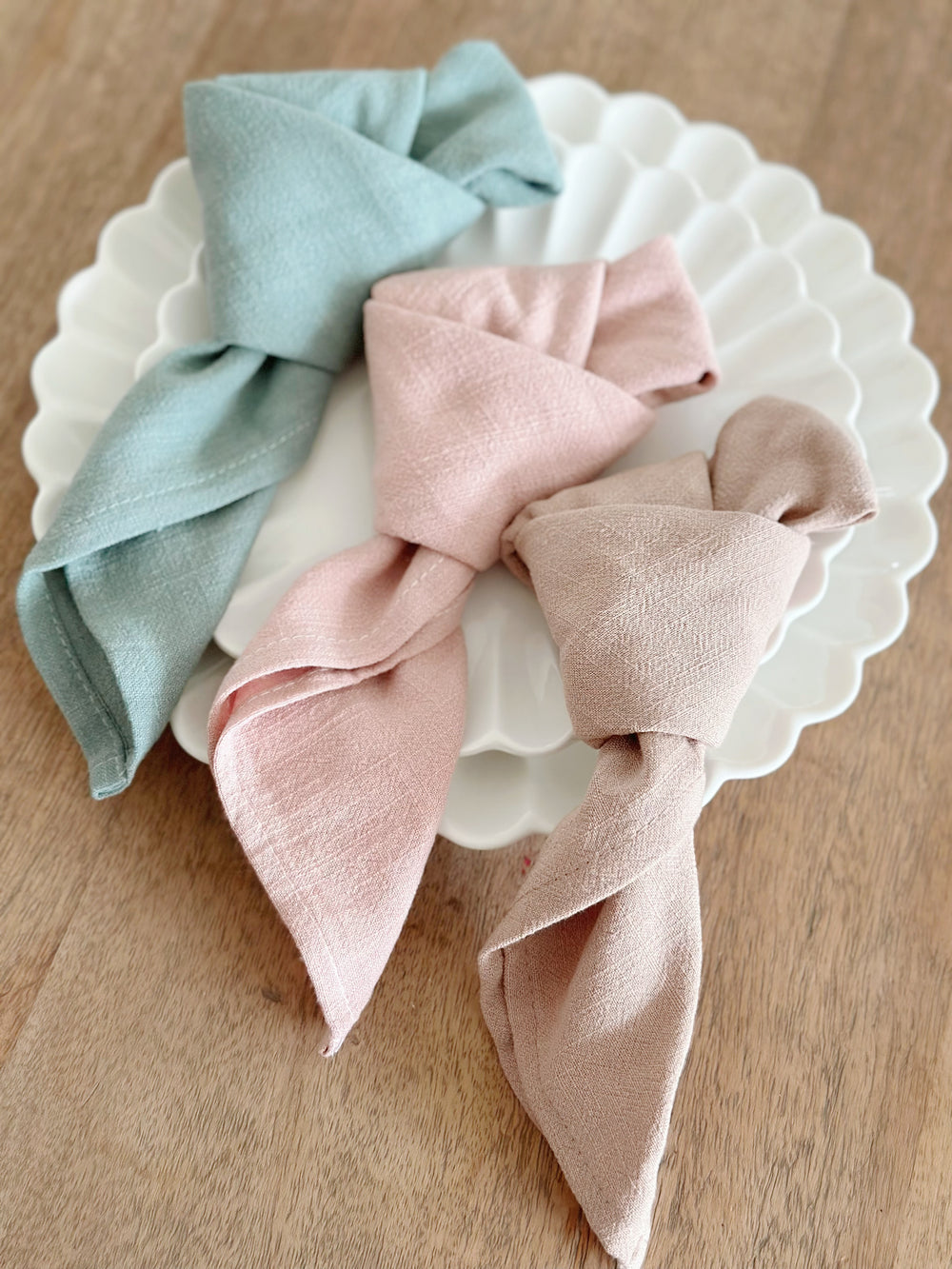 Introducing our Pastel Breeze EasyHang Napkins – the perfect fusion of functionality and aesthetic appeal. Crafted from a quality blend of cotton and linen, these napkins offer the softness and durability needed for daily use, while adding a touch of elegance to your dining experience. Available in three serene shades: latte, dusty pink, and dusty green, each colour has been carefully selected to complement any table setting, bringing a calming and sophisticated atmosphere to your meals.