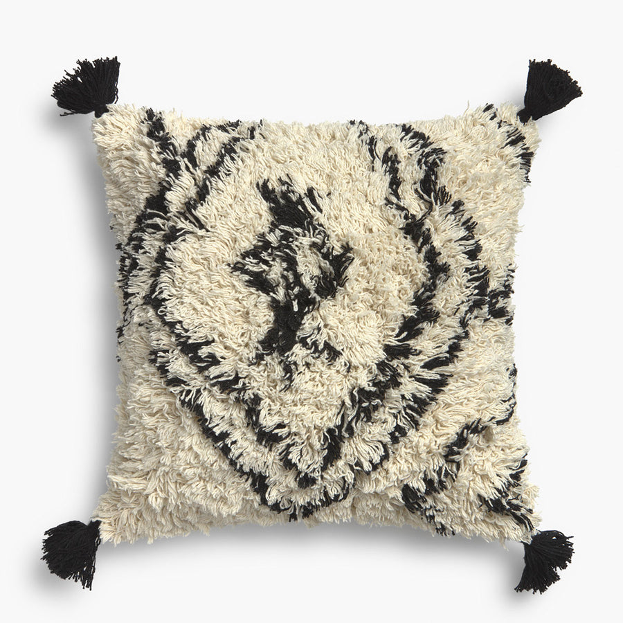 A gorgeous cushion to add on the beautiful texture and personality to your living space whether to place it on your sofa, bed or reading nook. This cream white 100% handmade cotton woven cover is with fluffy tufted geometric details and finished with cute tassels on 4 corners for added texture, it would sit perfectly in a boho and contemporary inspired home.