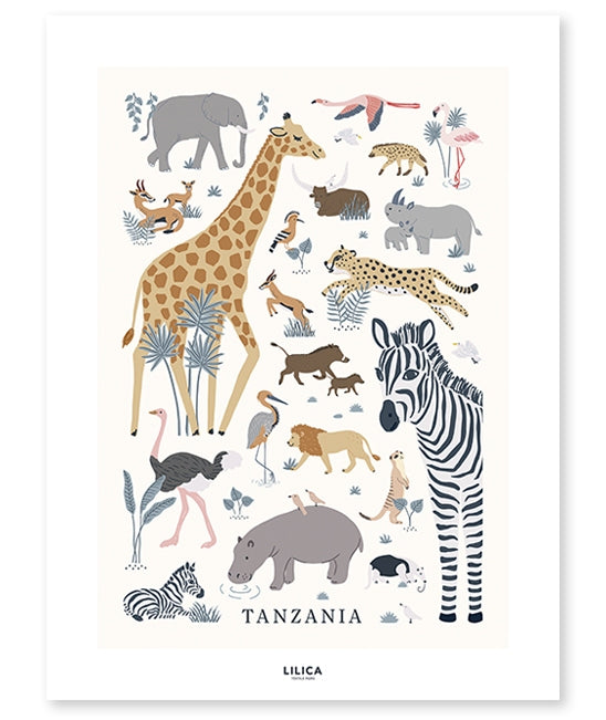 Looking for African animals to decorate the nursery? You will find the most beautiful members of the animal kingdom in this poster.