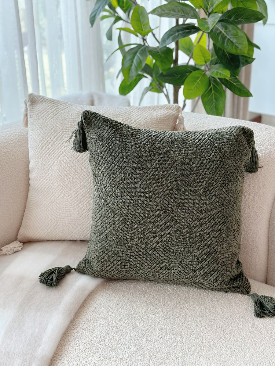 Introducing our HerringHaven Tassel Cushion Cover, a perfect blend of elegance and comfort. Crafted with meticulous attention to detail, this cover features a timeless herringbone pattern that adds a sophisticated touch to any space. The subtle texture of the weave offers a tactile experience, while the playful tassels on each corner infuse a whimsical charm. Made from high-quality fabric, it’s soft to the touch and durable for daily use. Available in a serene palette of colors, it’s designed to complement any decor style, adding a layer of warmth and style to your favorite nook. Make a statement with this chic and cozy addition to your home collection.
