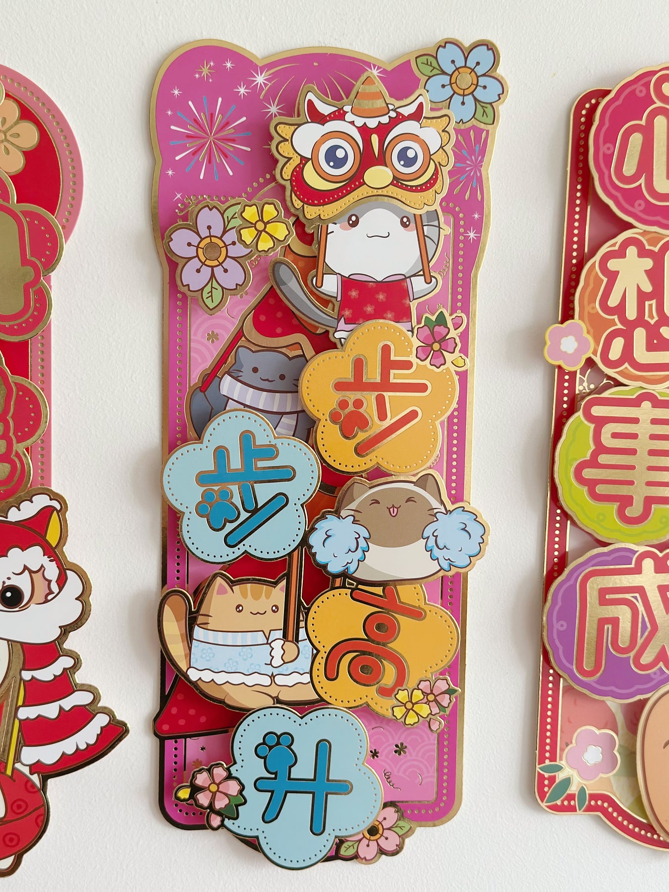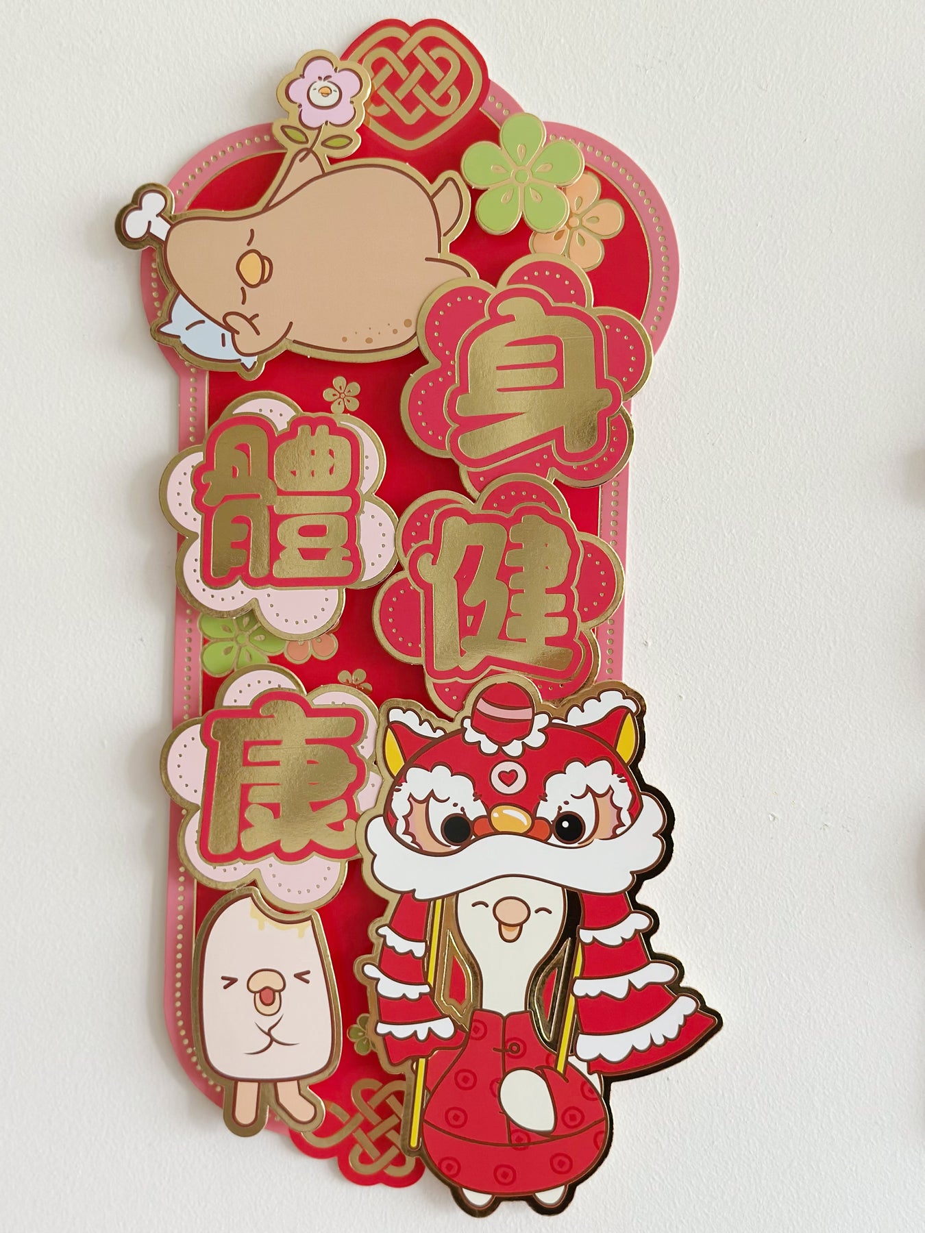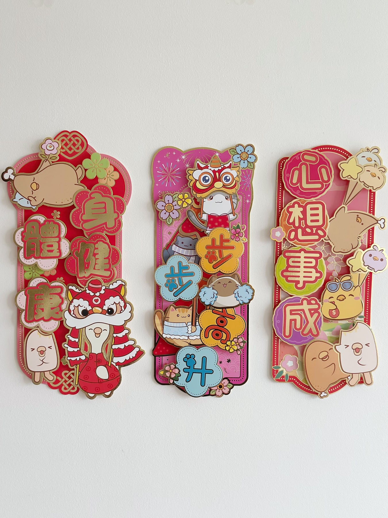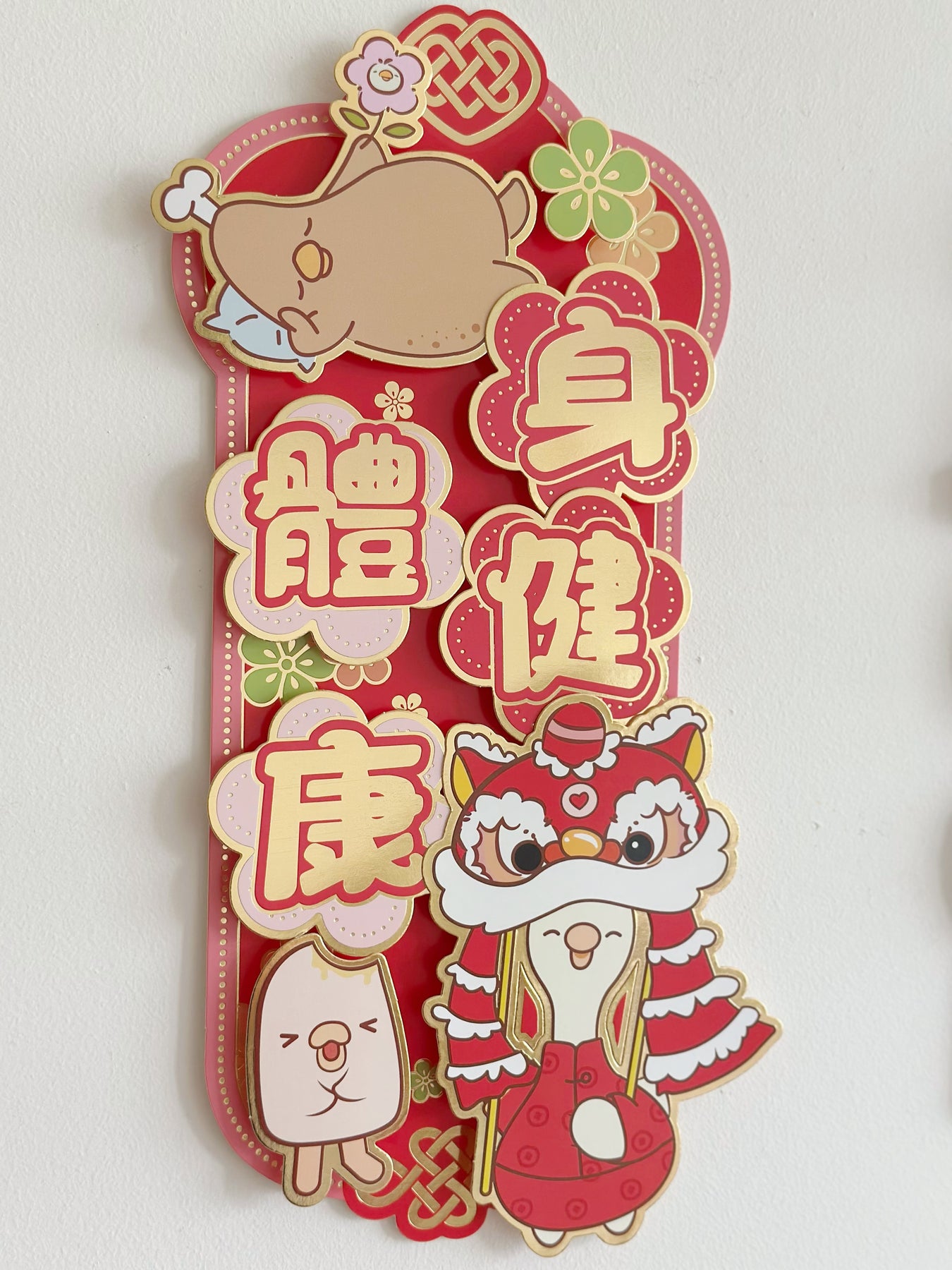 Add a festive touch to your space with the Blissful Charm 3D Wall Décor! Each piece features an adorable cartoon character paired with a meaningful Chinese New Year blessing, such as health, prosperity, or success. With vibrant colors, intricate golden metallic details, and a fun 3D design, these wall decorations are perfect for doors, small walls, or even as part of a festive backdrop.