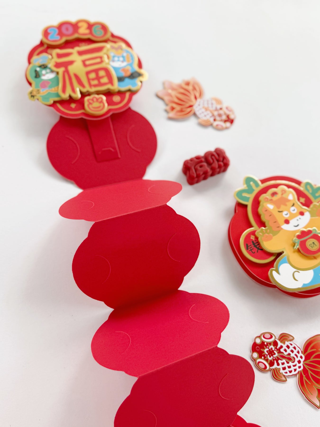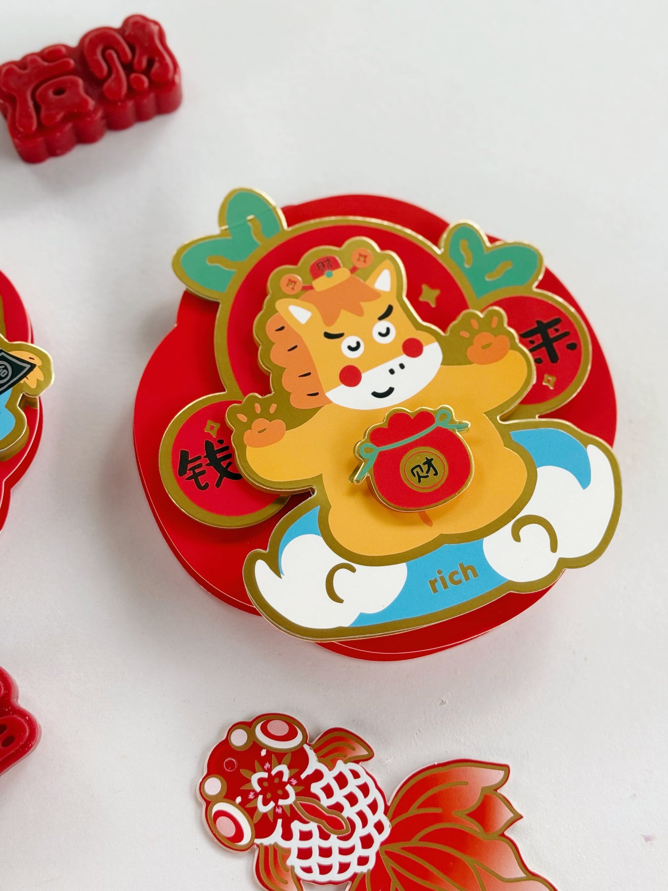A unique multi-slot red packet that doubles as a festive decor piece when folded.