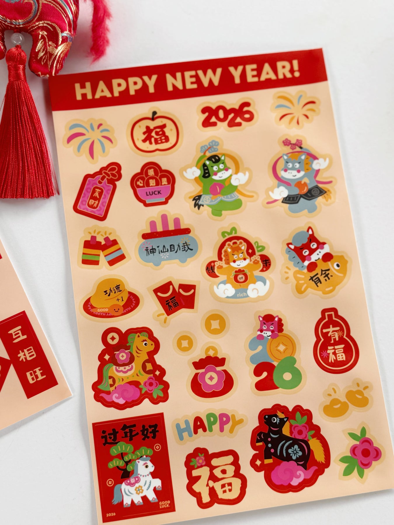 Add a playful dose of CNY cheer to your gifts, red packets, planners or festive notes with this super fun sticker set. Packed with adorable illustrations, cheeky phrases and auspicious motifs, these stickers are perfect for layering, decorating or just spreading some huat-huat vibes wherever you stick them.