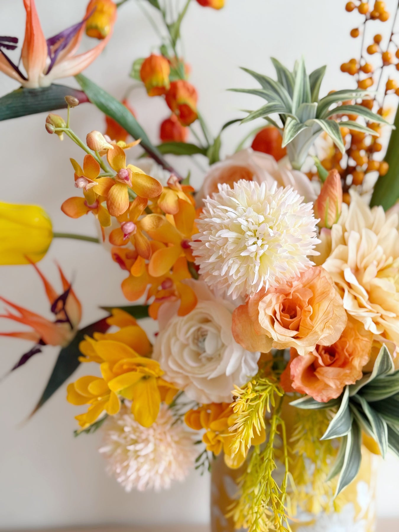 A luxurious floral centrepiece that embodies “金玉满堂” — where prosperity, blessings and abundance fill the home.
