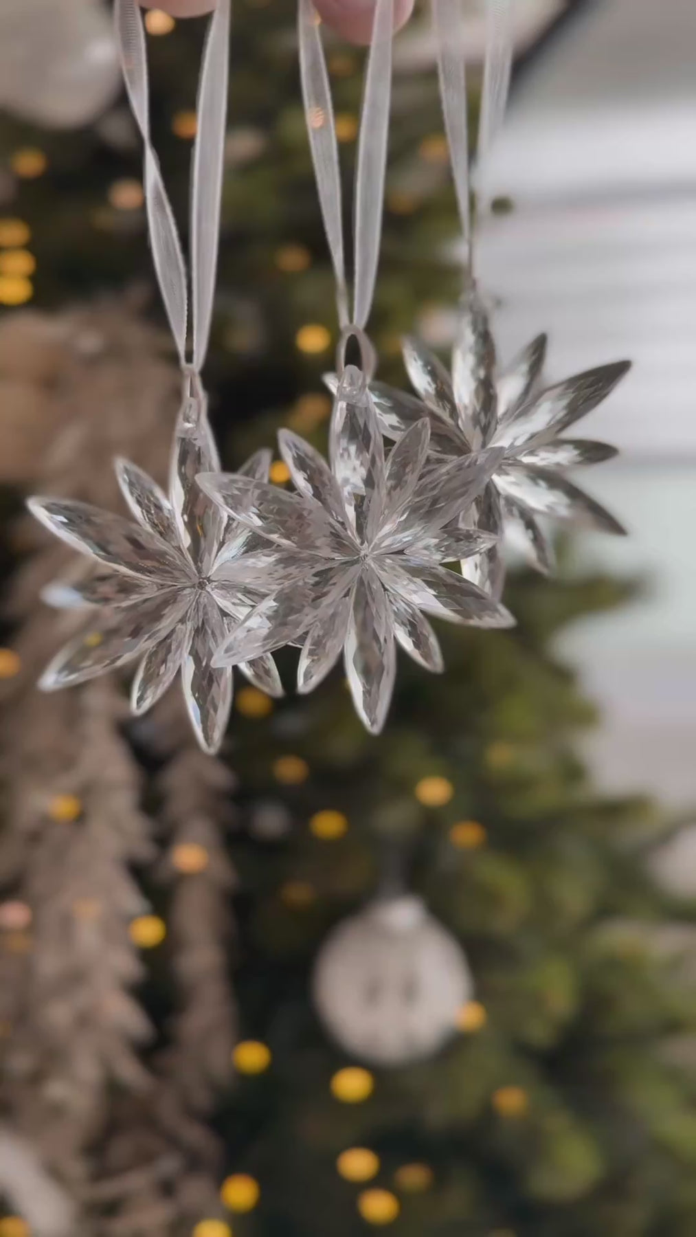 Designed in clear, crystalline form, these snowflakes are perfect for a minimalist Christmas look — hang them on festive branches, style them lightly across your Christmas tree, or let them softly glow against warm fairy lights. Their clean, transparent design blends effortlessly into both classic and modern holiday homes.