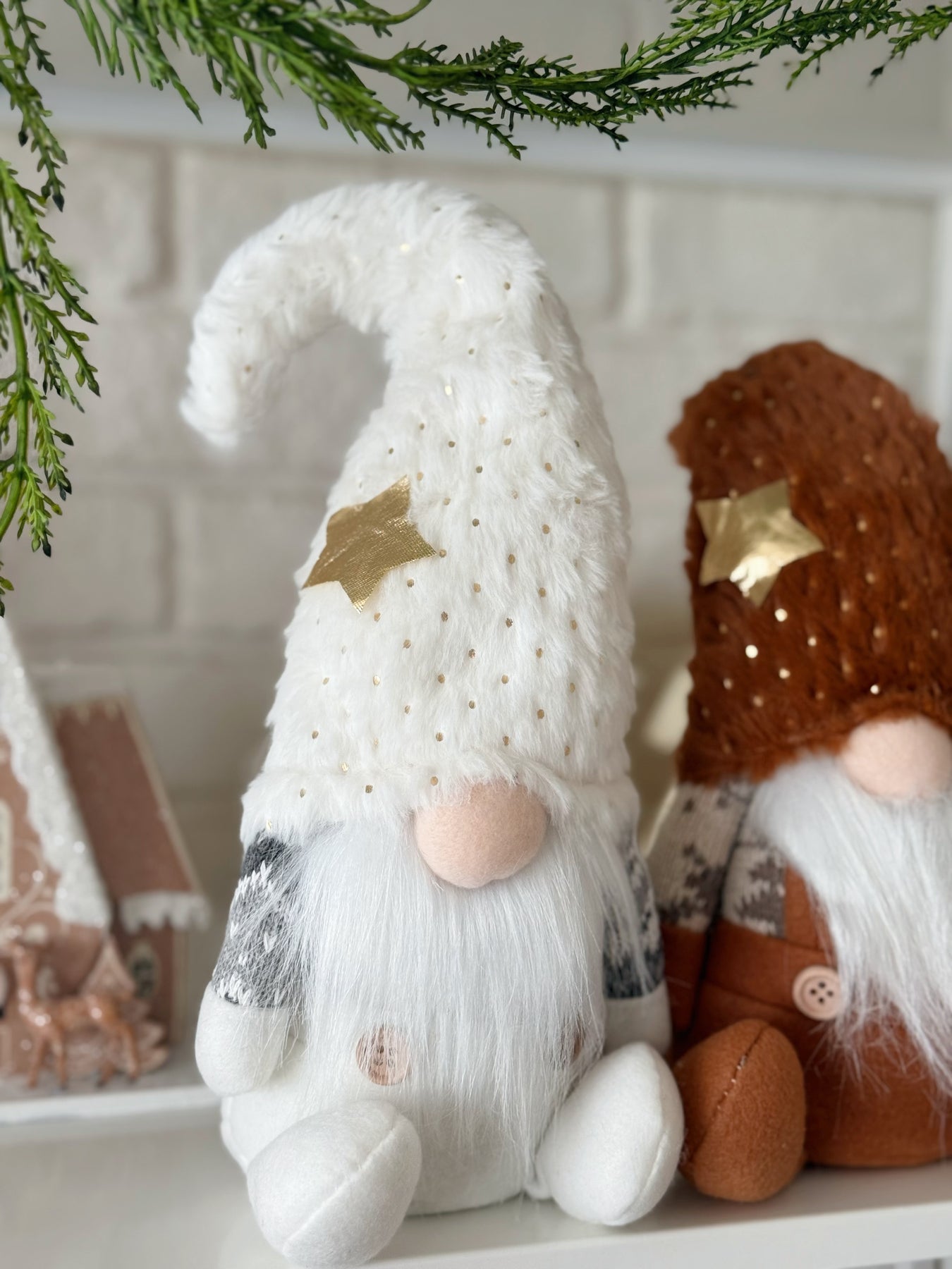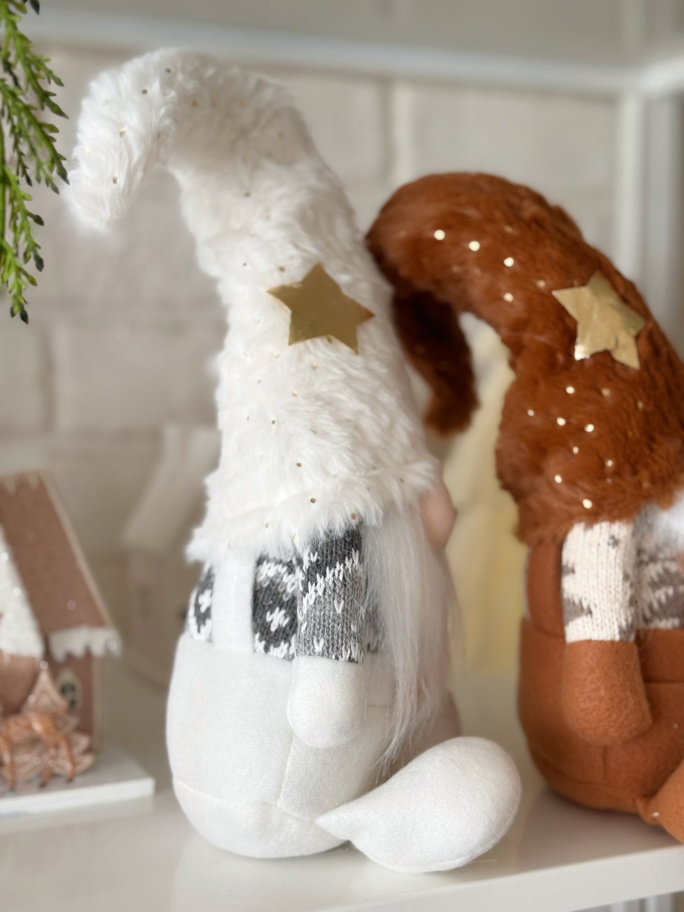The white gnome adds a dreamy winter touch, while the brown gnome brings an earthy, woodland warmth — perfect for styling together on shelves, tables, or mantels. A lovely duo that blends Scandi simplicity with festive cheer.